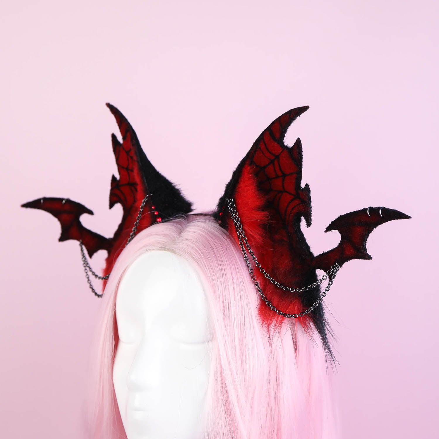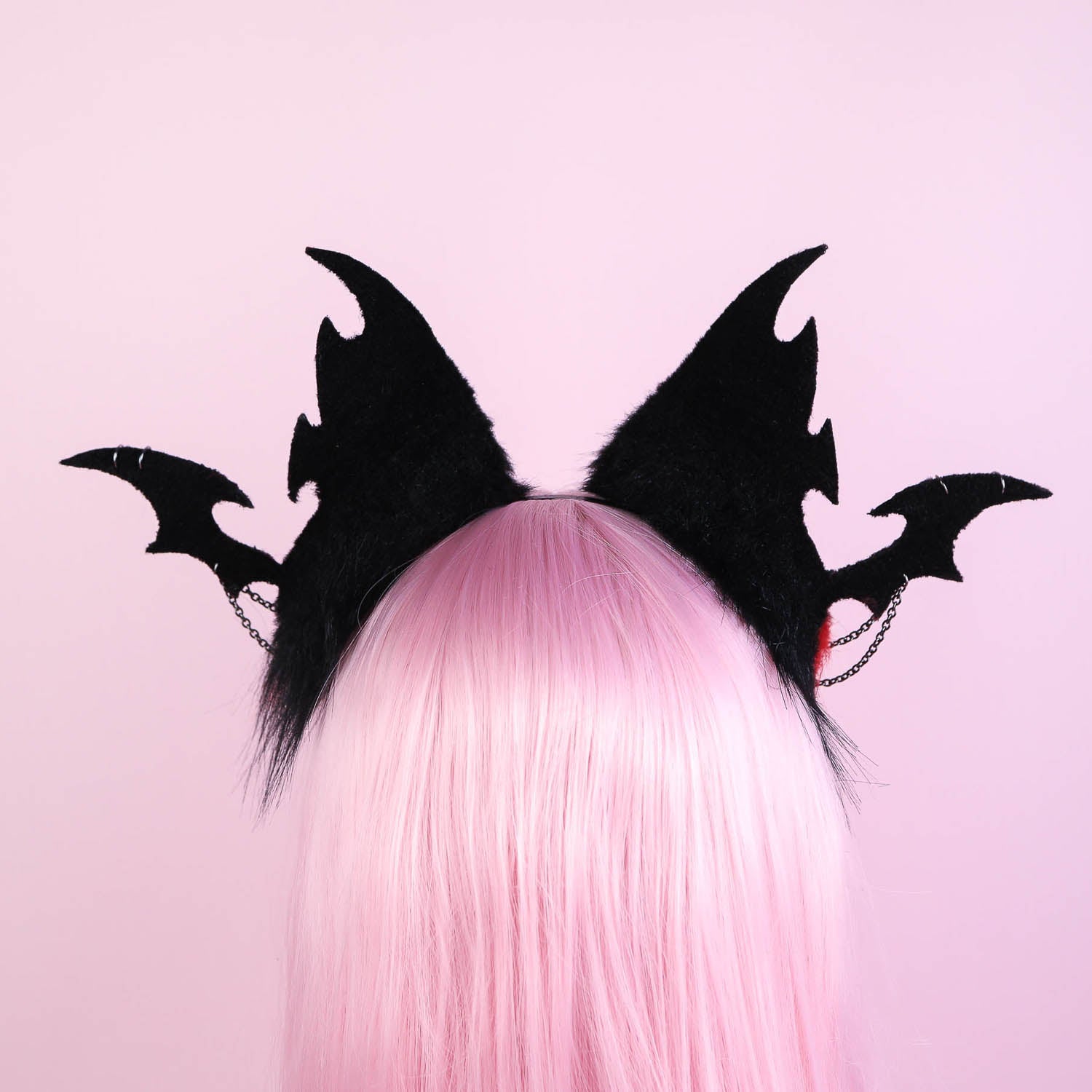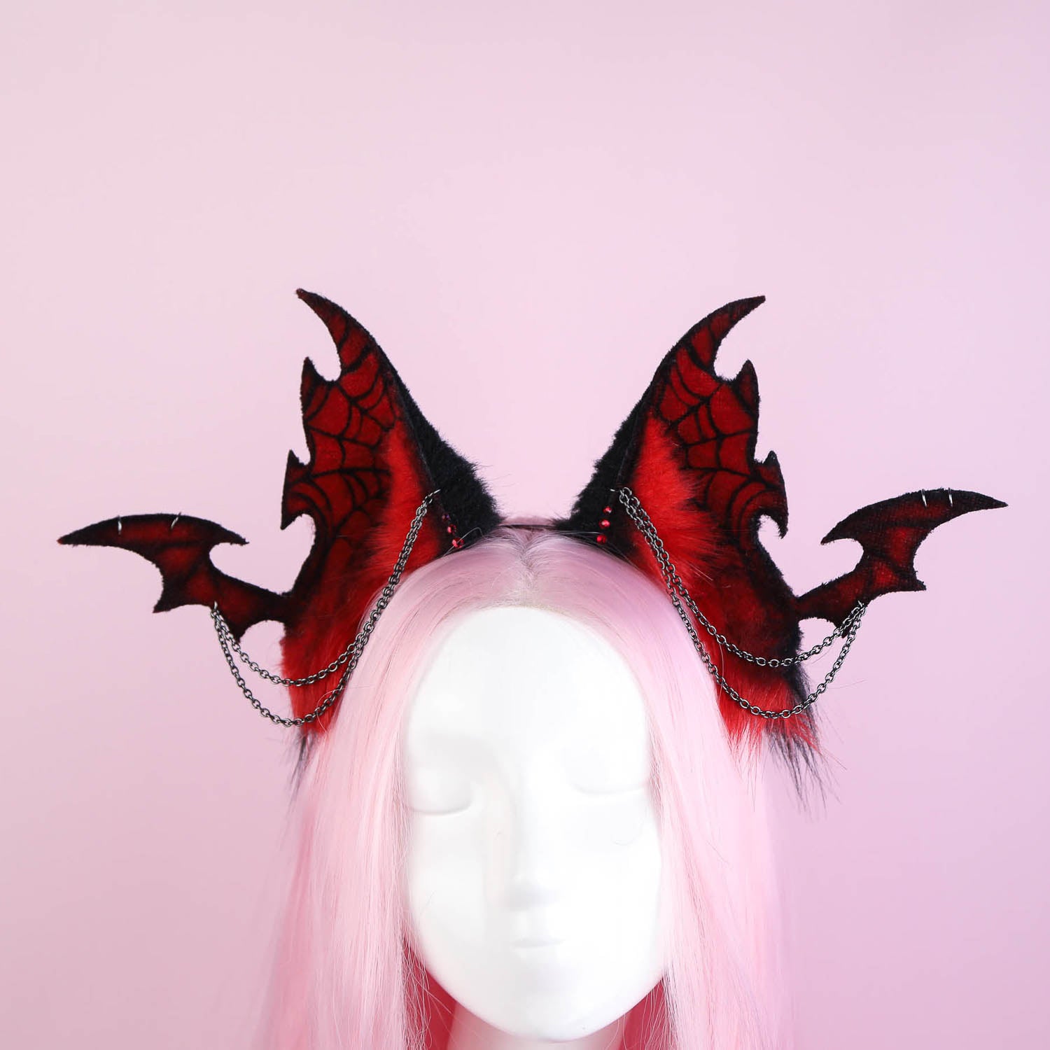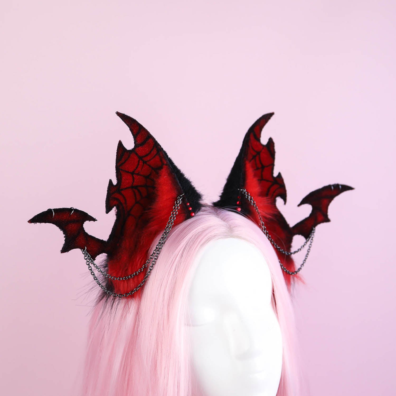 Ears are fully wired and posable on a metal headband. Approximately 4 inches tall. We use luxury quality faux fur and crystals. Ears are decorated with chains.