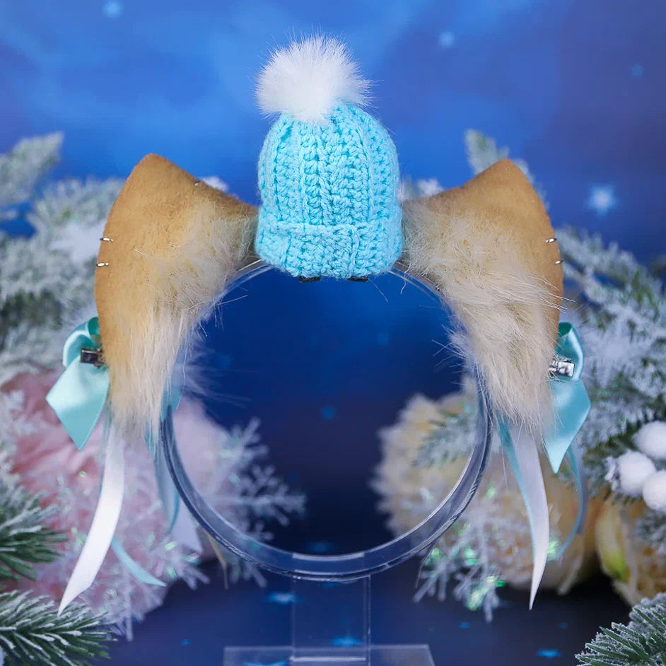 Ears are fully wired and posable on a metal headband. Approximately 2,5 inches tall. We use luxury quality faux fur and crystals. Ears are decorated with piercing hoops, snowflake charm, little removable hat and removable bows on little alligator clips with fluffs.