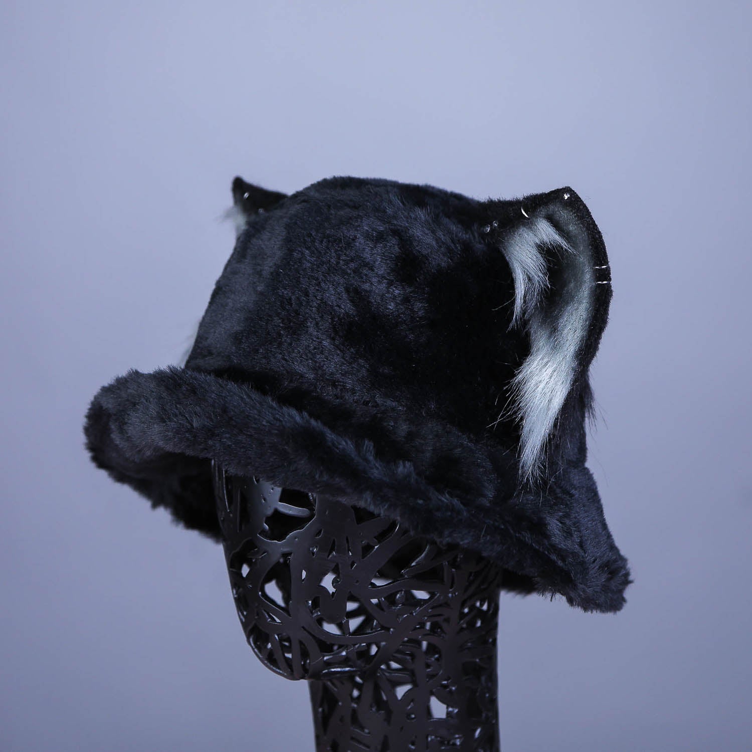 Black hat with removable kitten ears. Made of luxury faux fur.