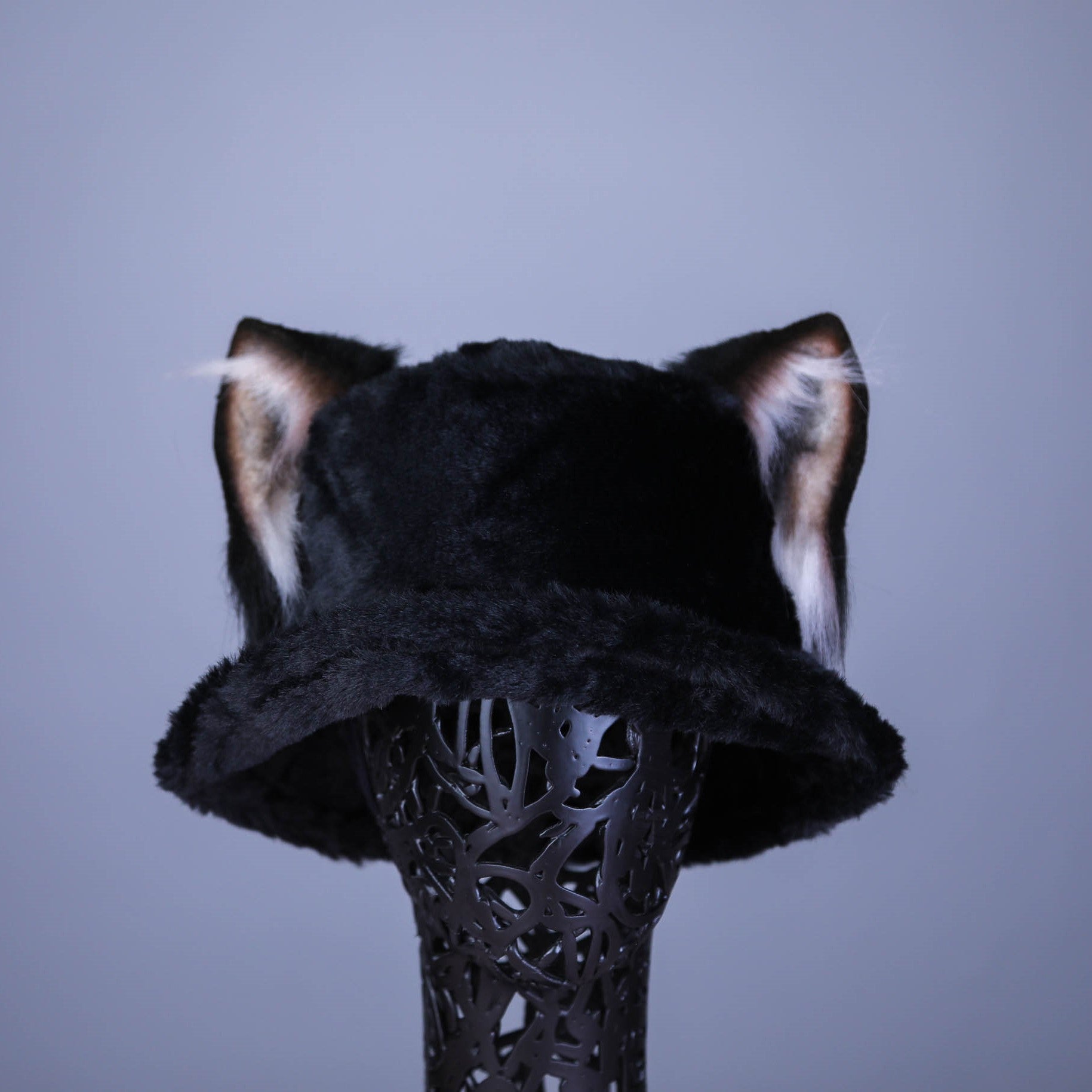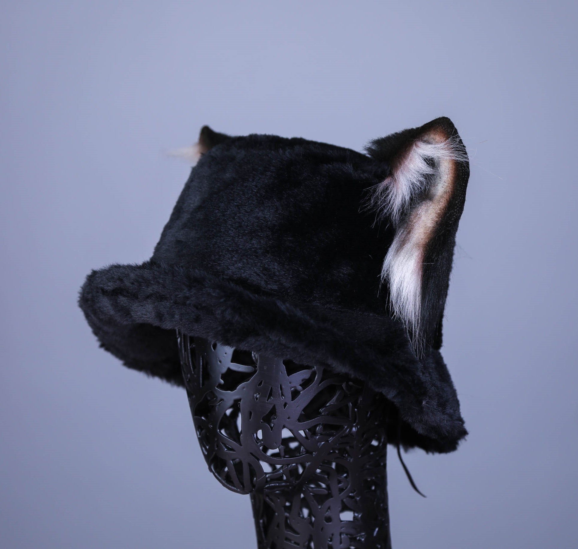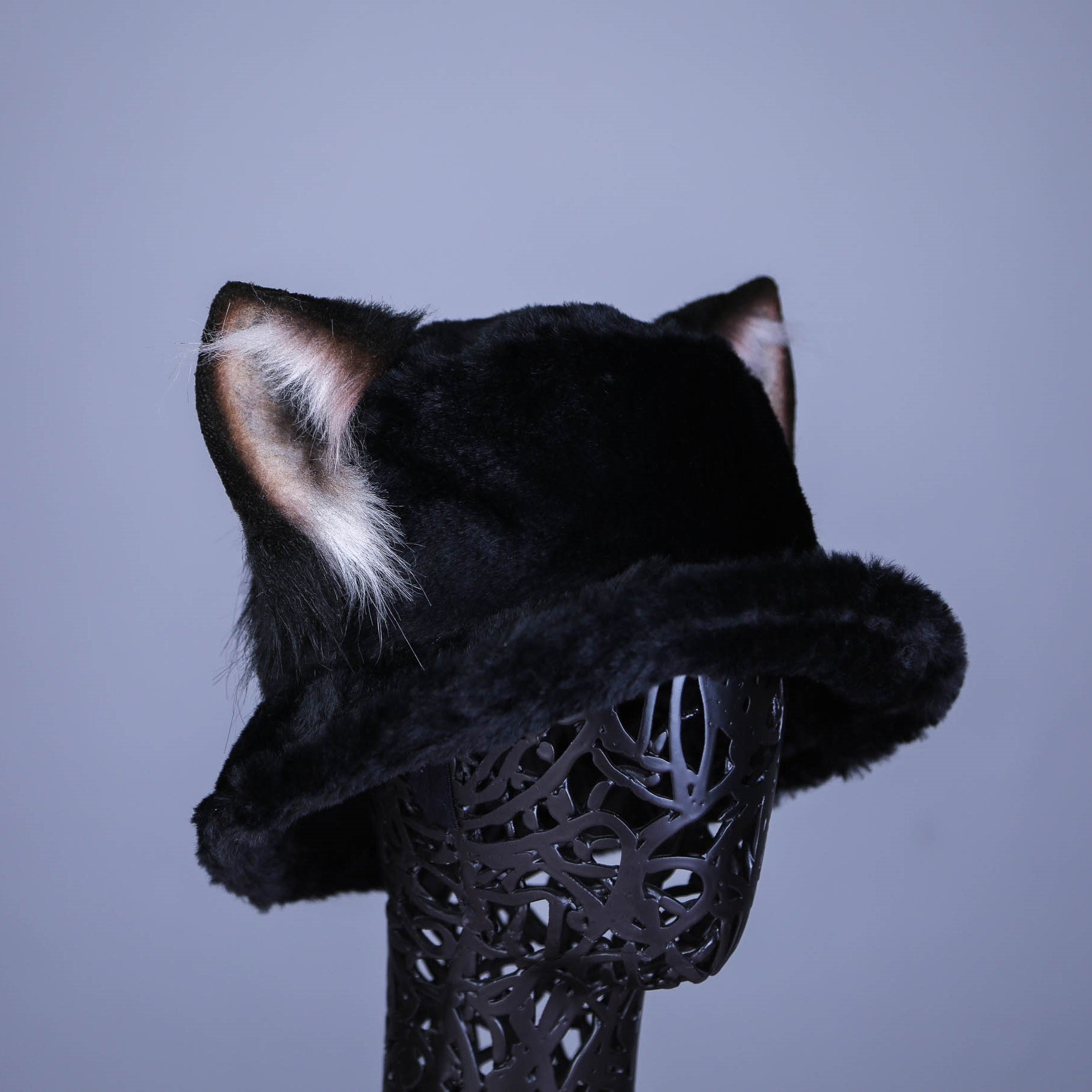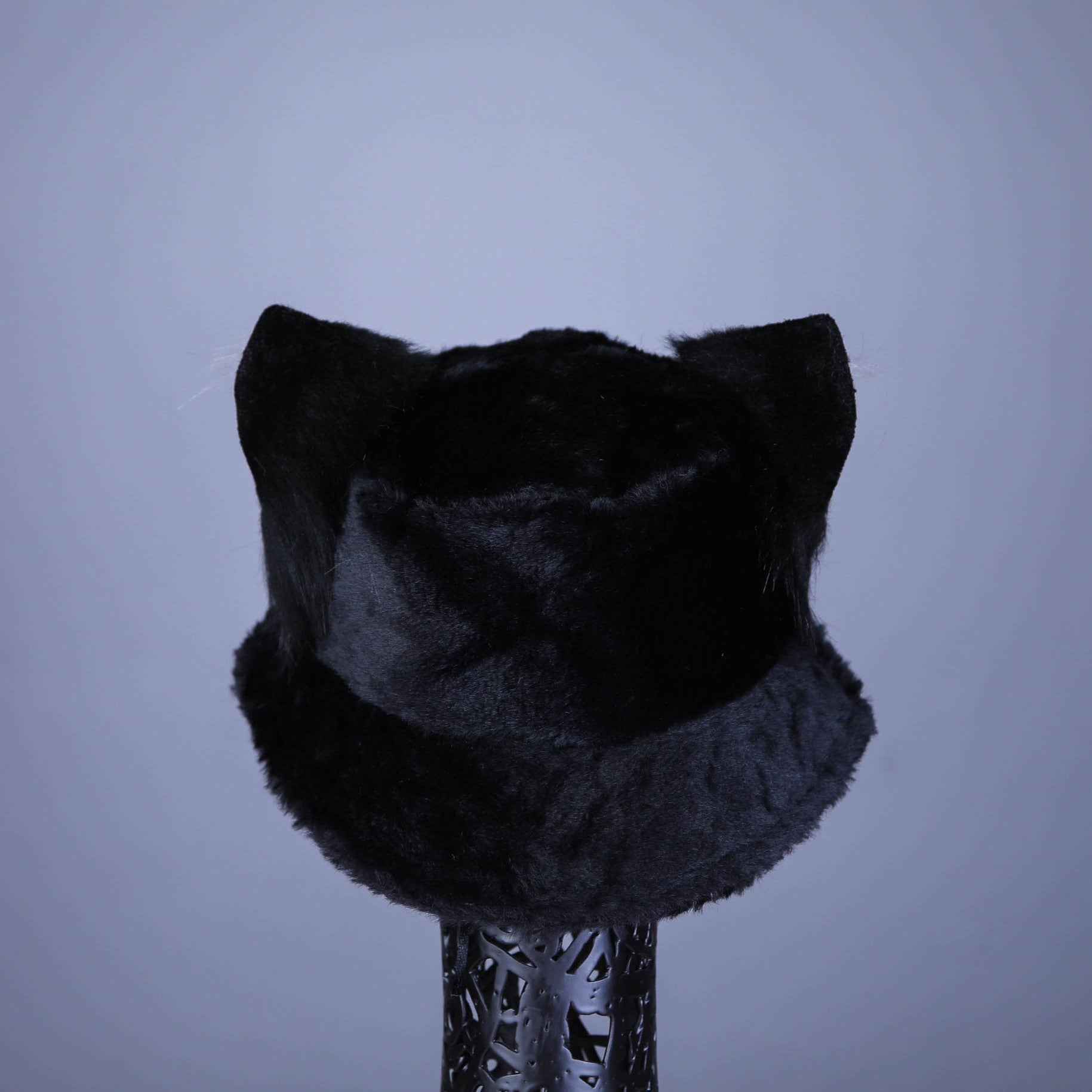 Black hat with removable kitten ears. Made of luxury faux fur.