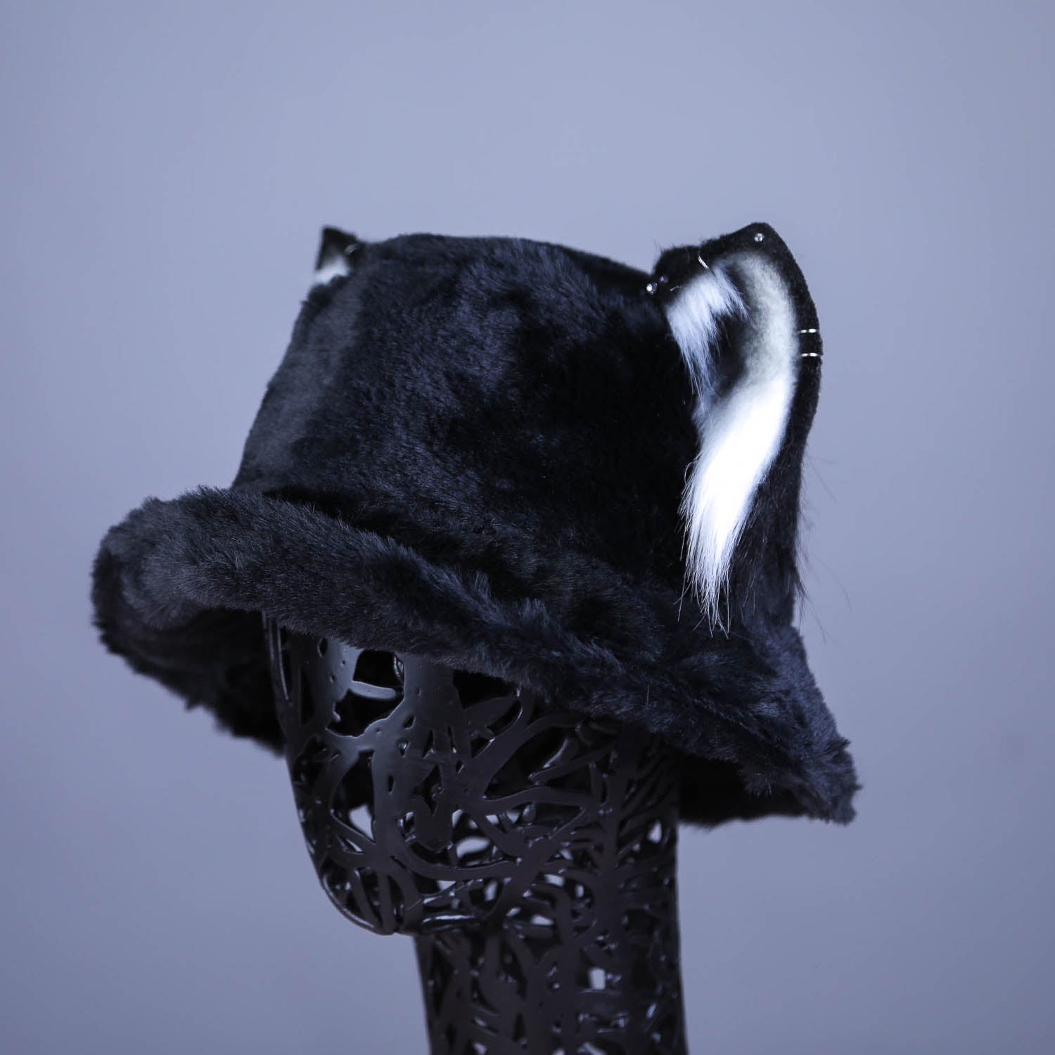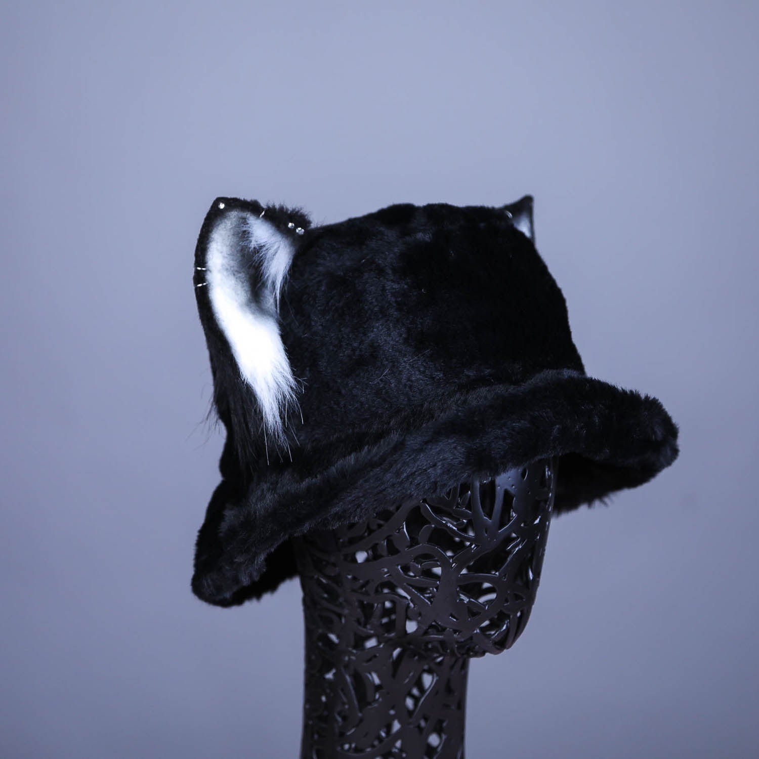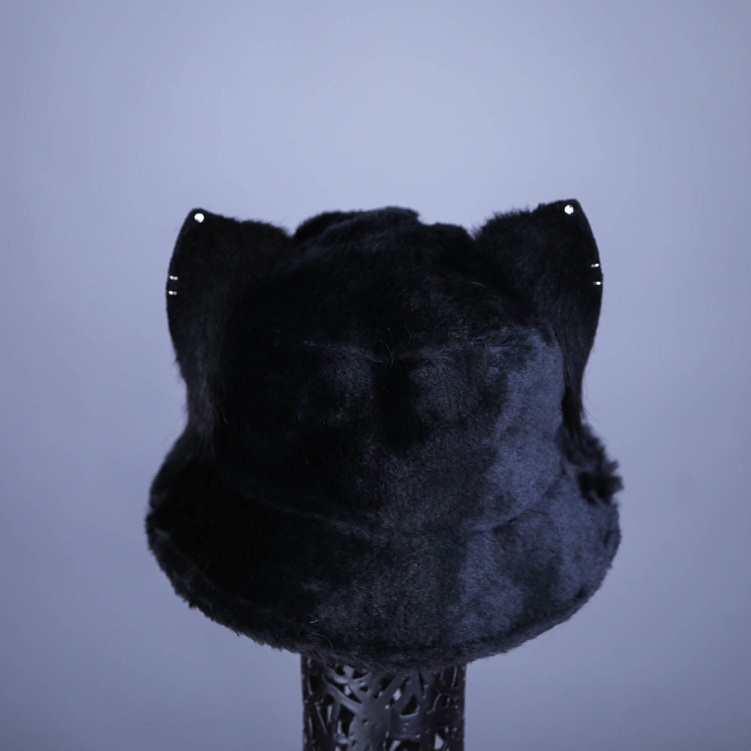 Black hat with removable kitten ears. Made of luxury faux fur.