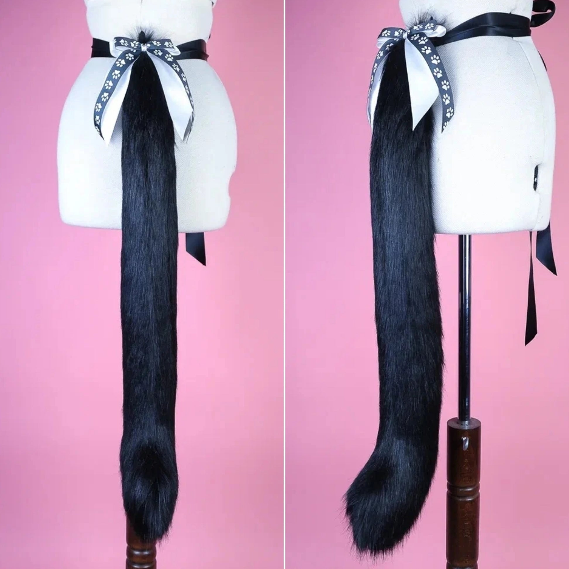 - tail is attaching by an elastic belt loop and a doublesided ribbon.