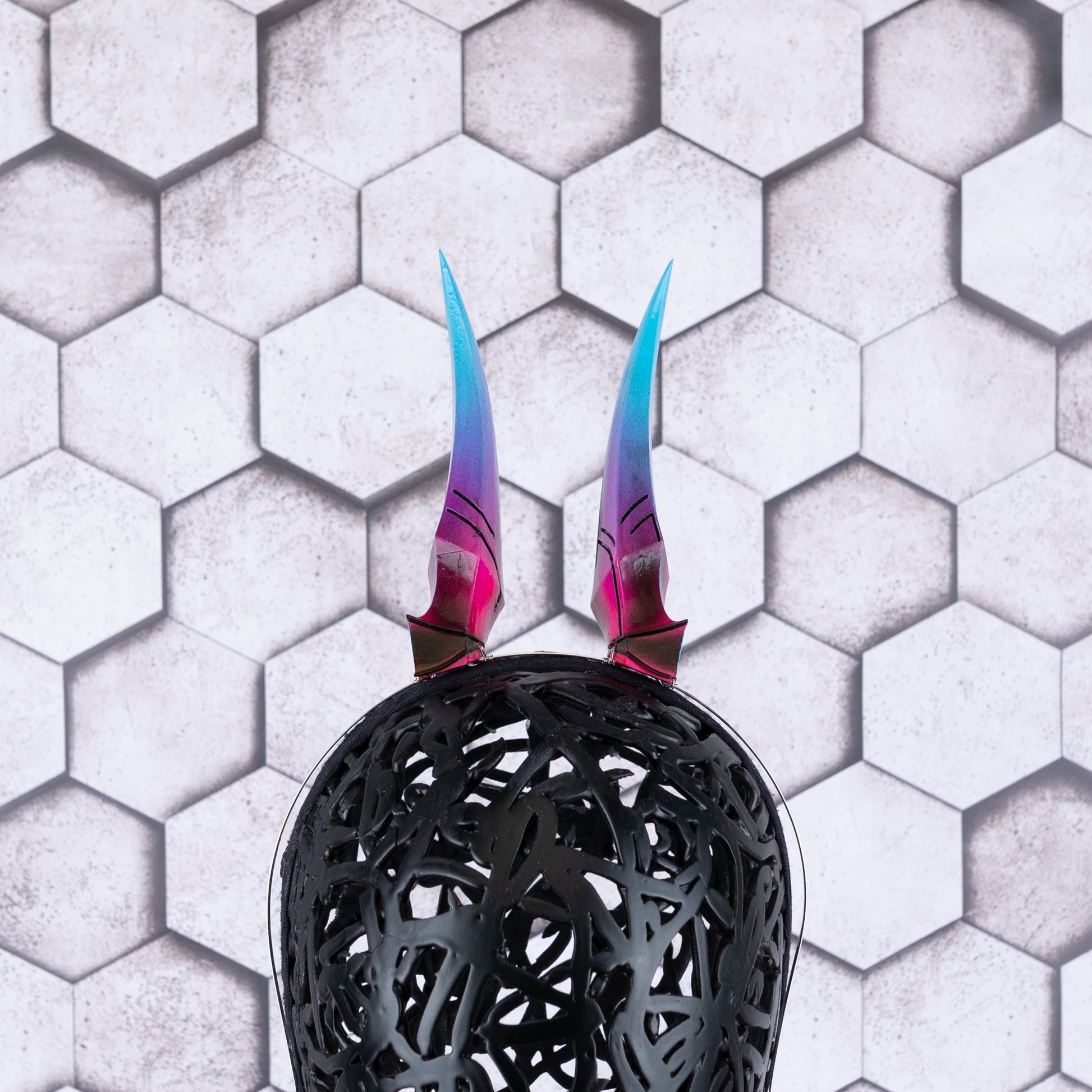 Blue and Purple Cyber Horns are fully wired and posable on a metal headband.