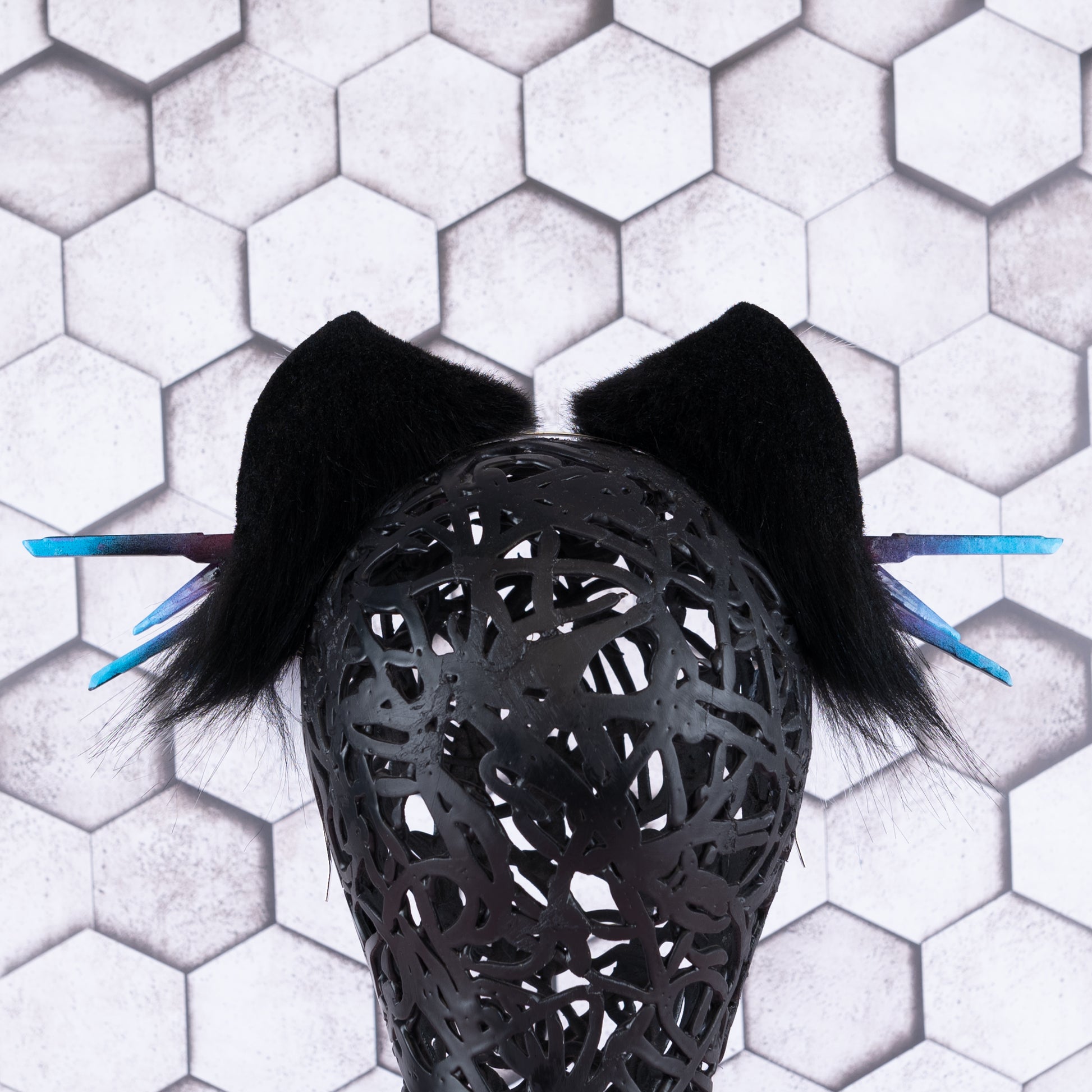 Ears are fully wired and posable on a metal headband. Approximately 2.5 inches tall. We use luxury quality faux fur and crystals.