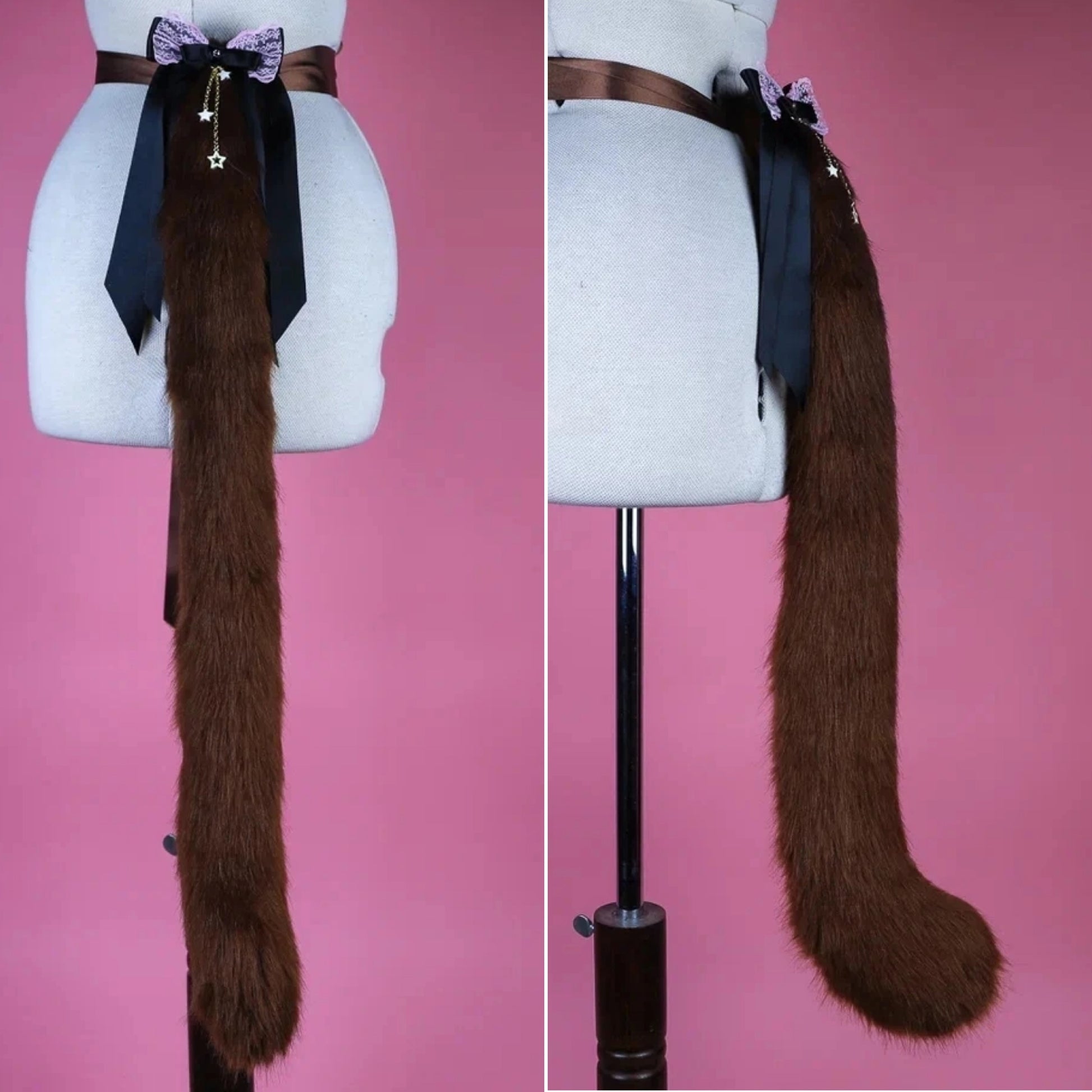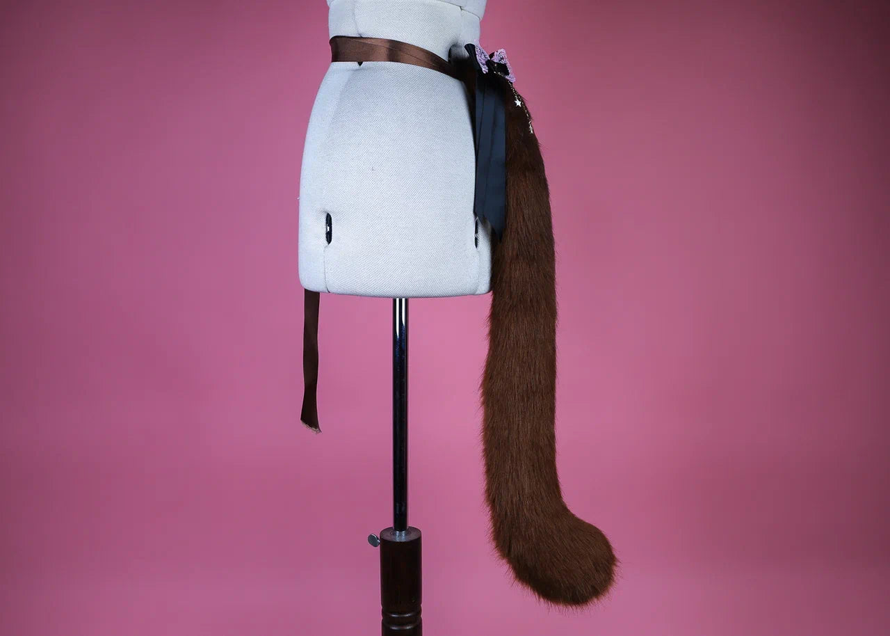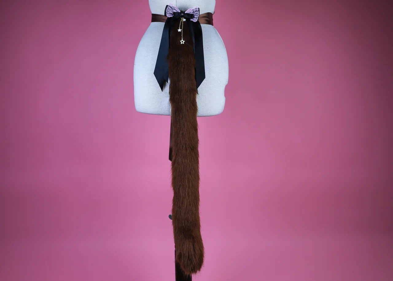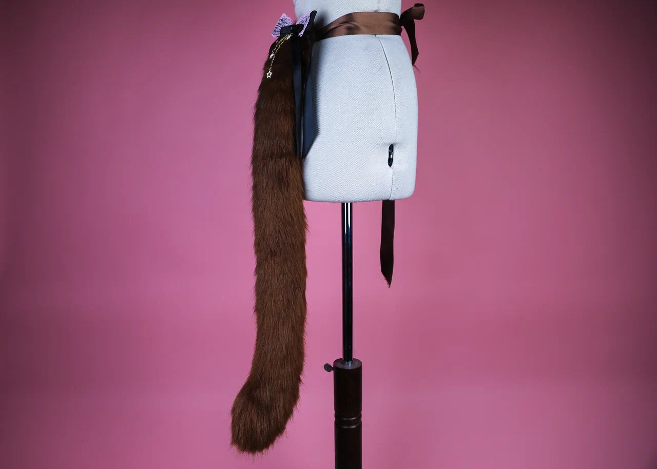 - tail is attaching by an elastic belt loop and a doublesided ribbon.