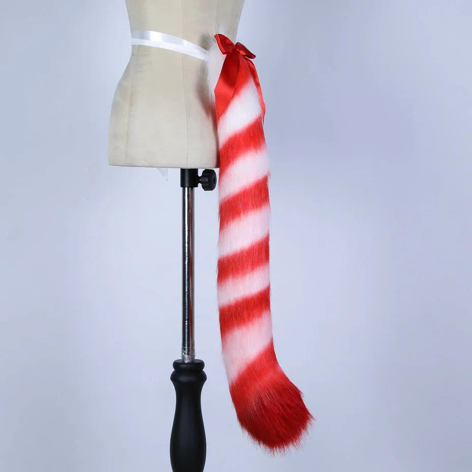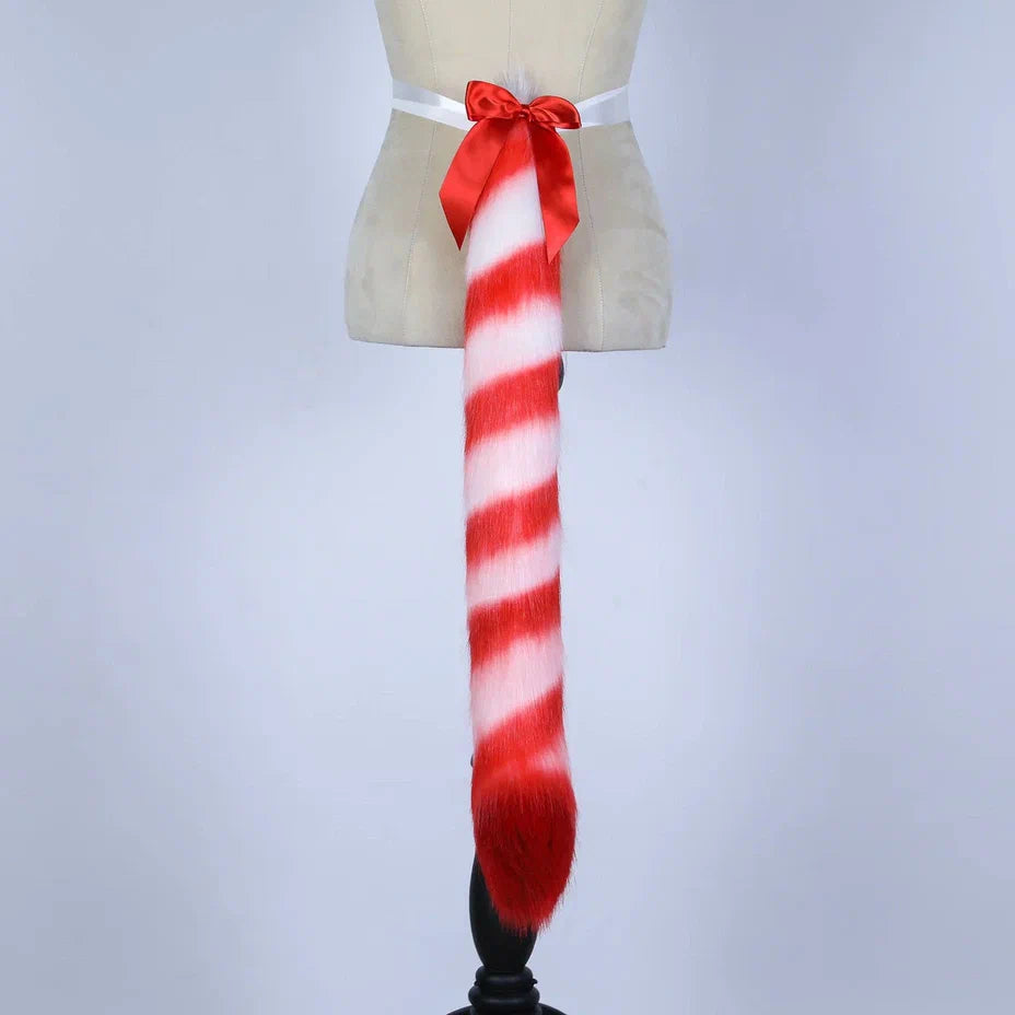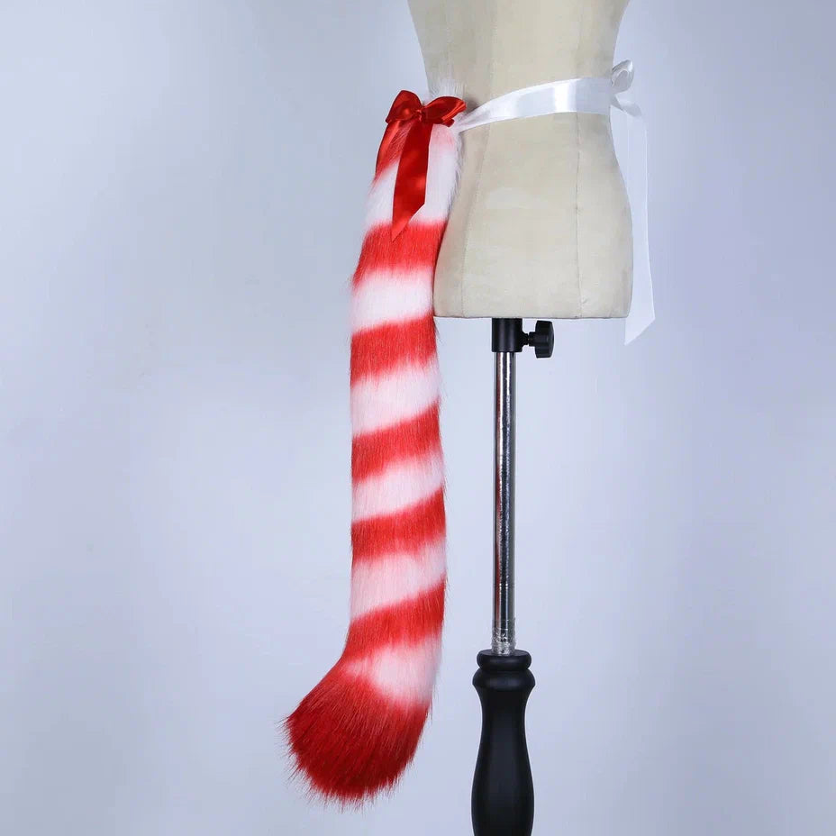 Fluffy tail approximately 30 inches long, made of luxury quality faux fur. Tail is attaching by an elastic belt loop and a doublesided ribbon.