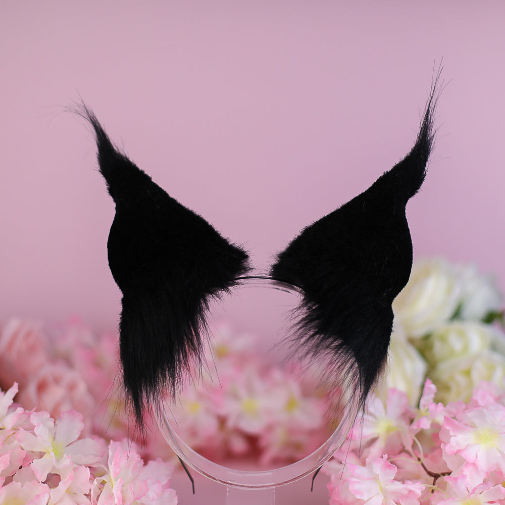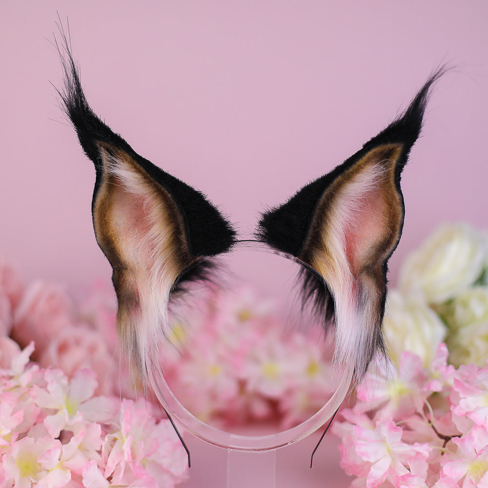 Ears are fully wired and posable on a metal headband. Approximately 2,5 inches tall. We use luxury quality faux fur and crystals.