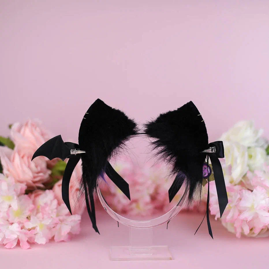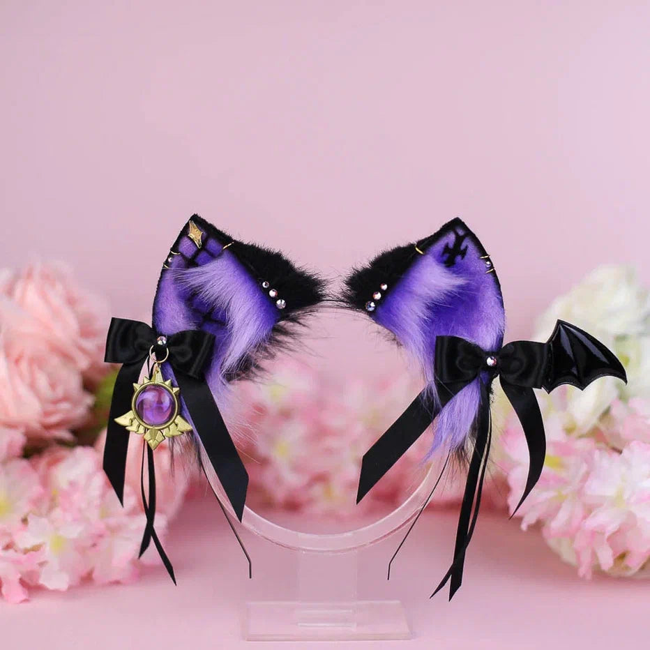 Ears are fully wired and posable on a metal headband. Approximately 2,5 inches tall. We use luxury quality faux fur and crystals. Ears are decorated with piercing hoops and removable bows on little alligator clips with pendants.