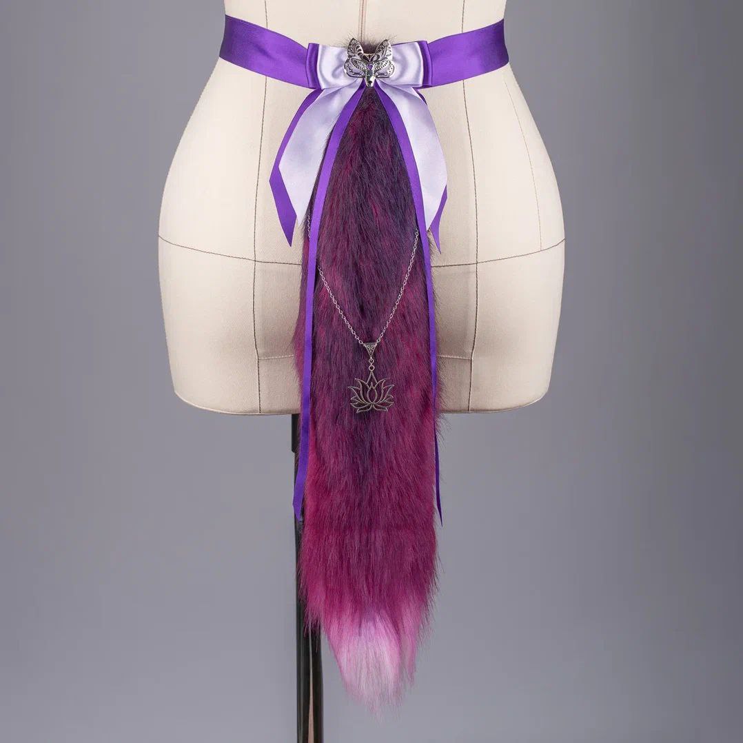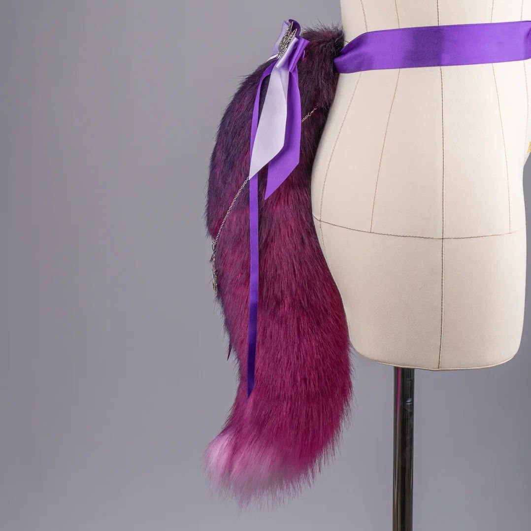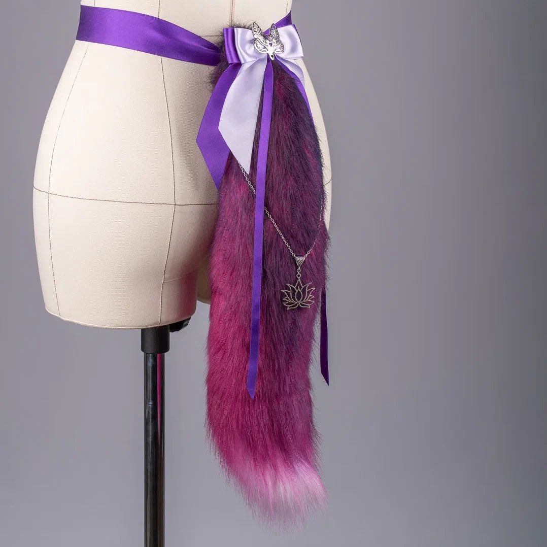 Fuchsia tail, approximately 22 inches, decorated with airbrushing and bow with themed pin. Tail is attached by an elastic belt loop and a doublesided ribbon. Made of luxury quality faux fur.