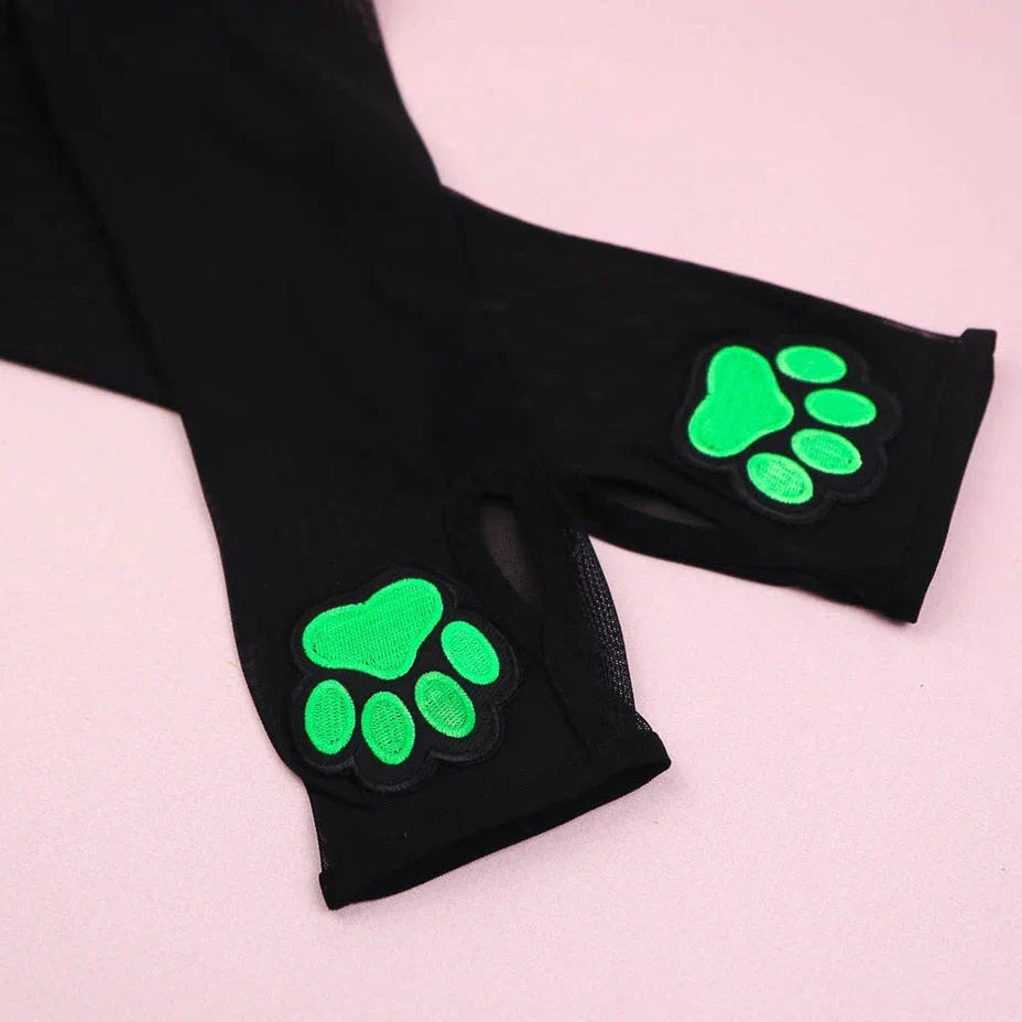 Made of elastic fabric that fits perfectly and is very comfortable to wear. Decorated with cute embroidered kitten pads.