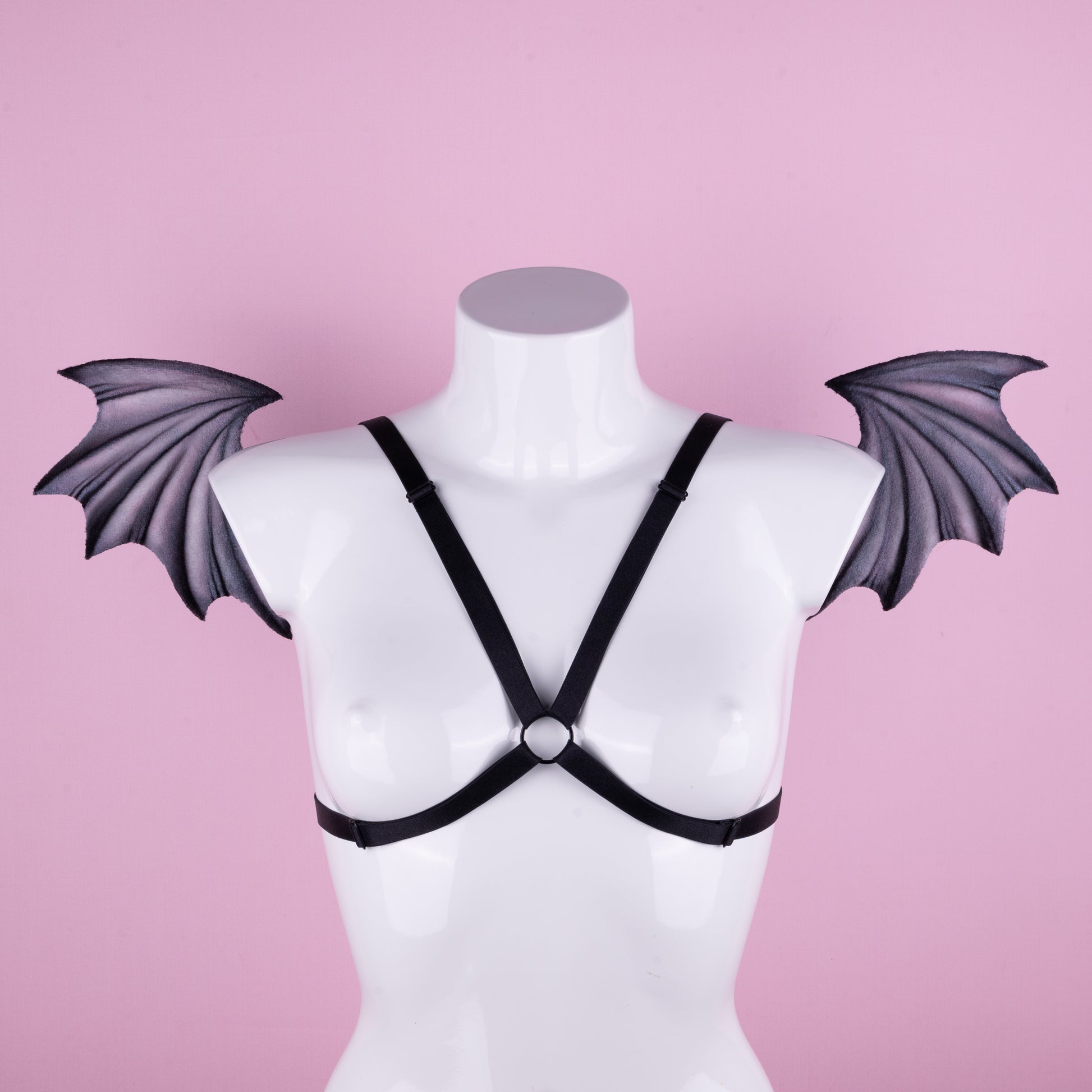 We use luxury quality faux fur. Approximately 8 inches tall. Can be attached to any bra straps.