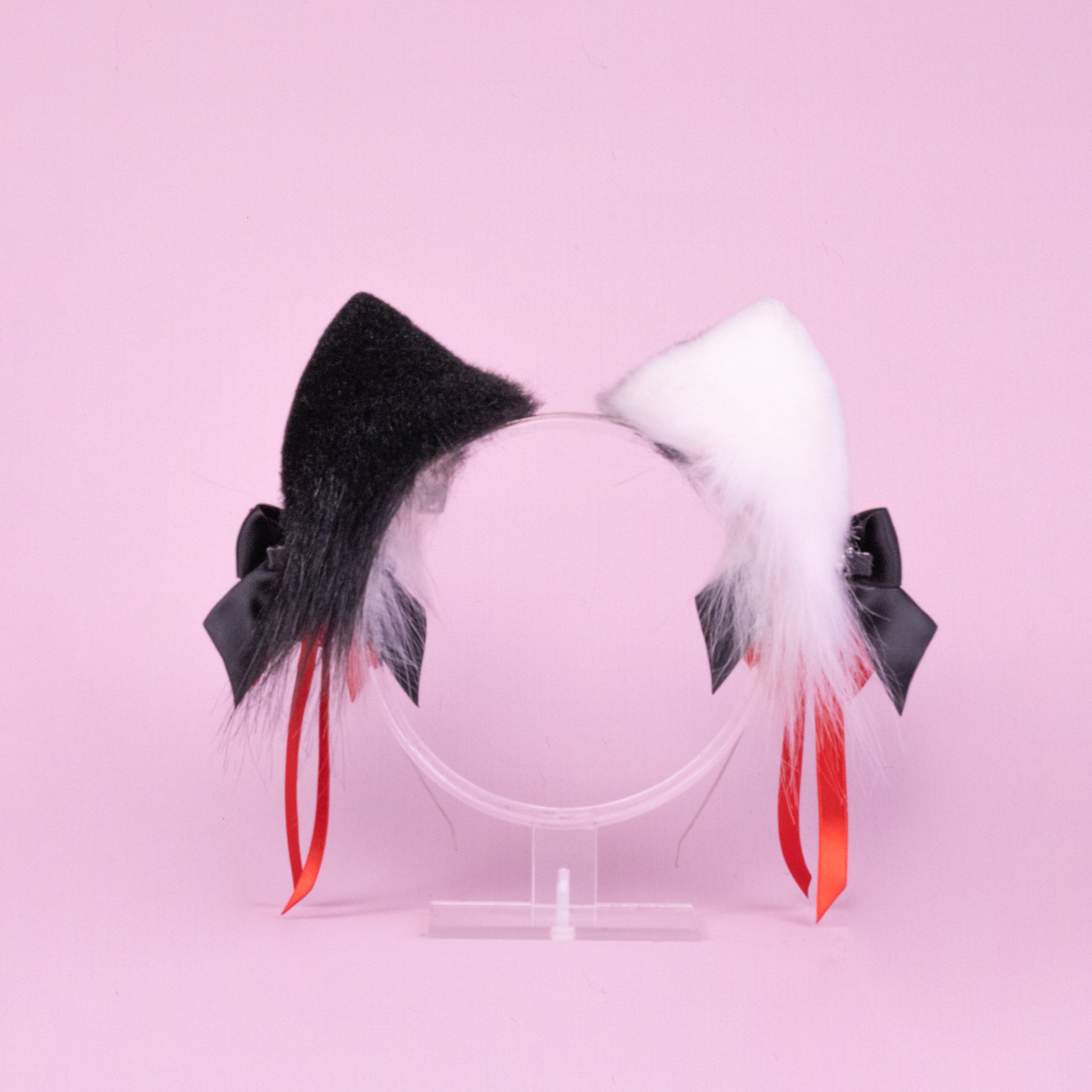 Ears are fully wired and posable on a metal headband. Approximately 2,5 inches tall. We use luxury quality faux fur and crystals. Ears are decorated with piercing hoops, charms and removable winged bows on little alligator clips with pendants.