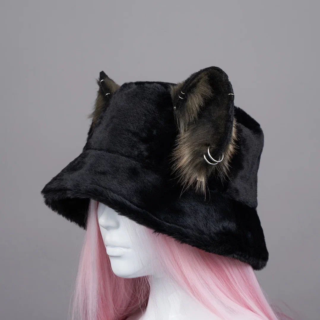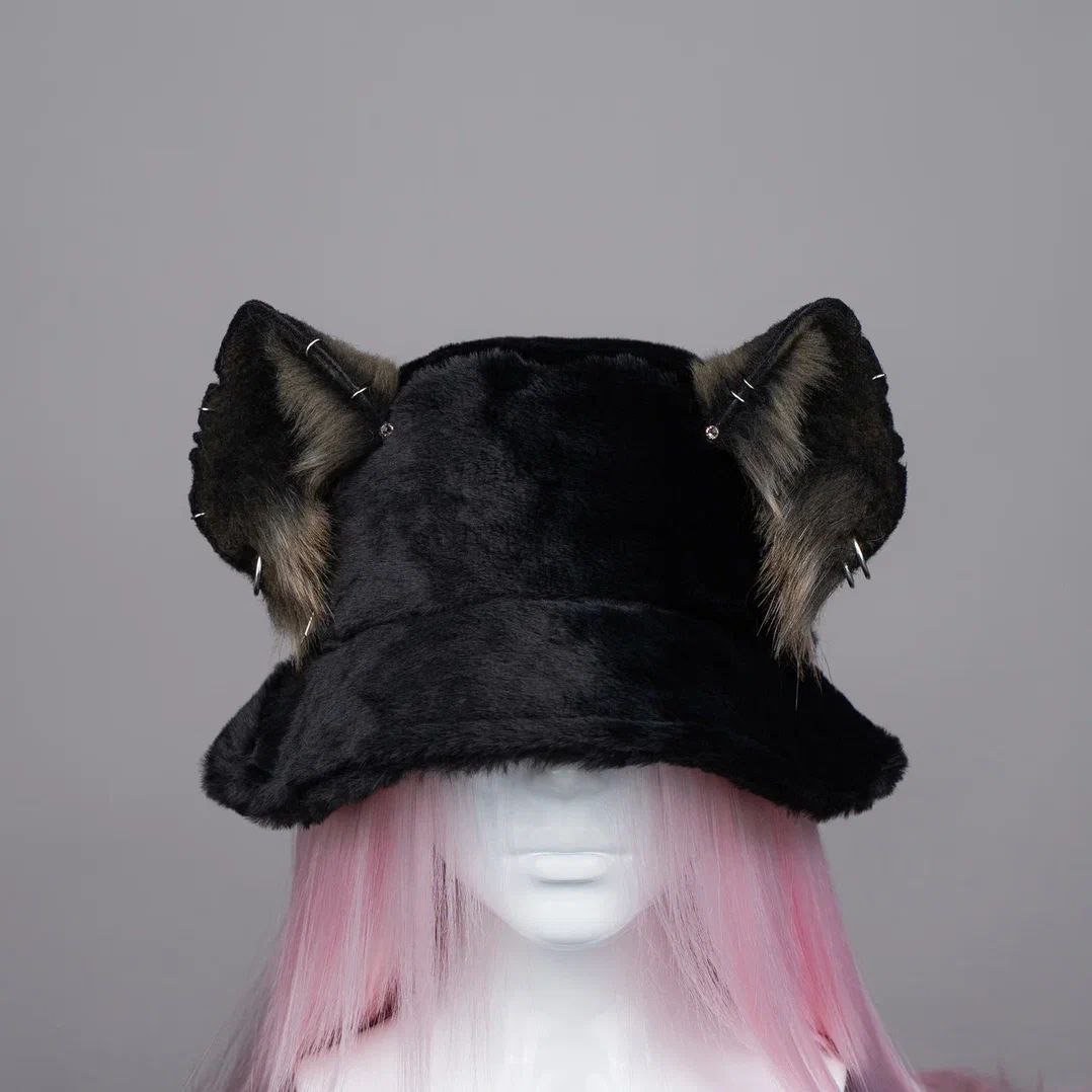 Fluffy hat with hyena ears. Made of luxury faux fur.