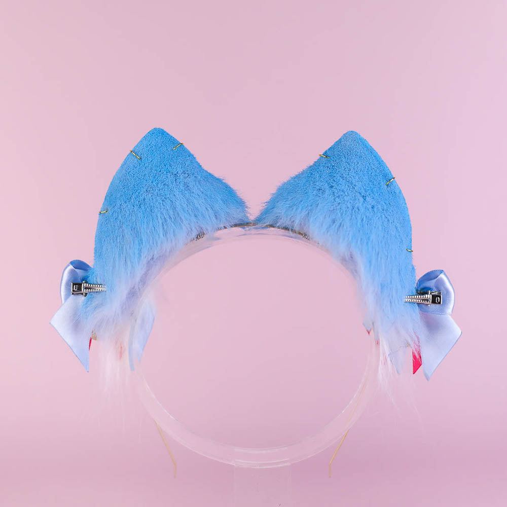 Ears are fully wired and posable on a metal headband. Approximately 2,5 inches tall. We use luxury quality faux fur and crystals. Ears are decorated with piercing hoops, chain and removable winged bows on little alligator clips with pendants.