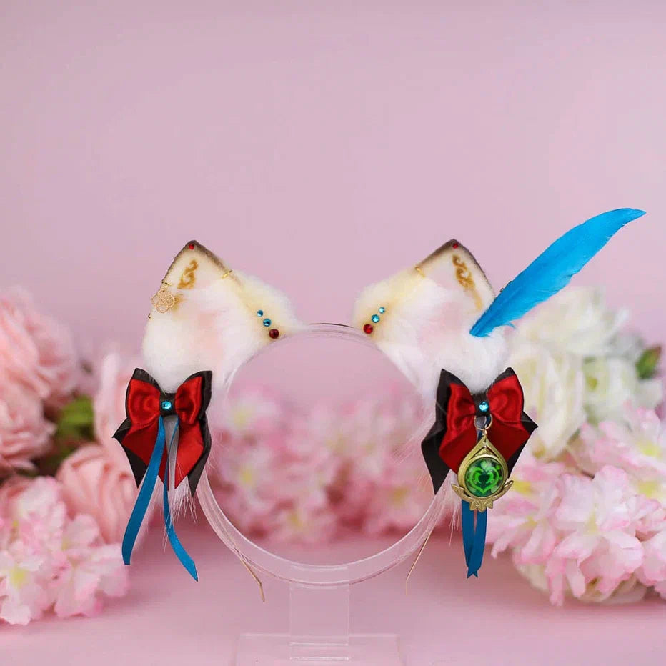 Ears are fully wired and posable on a metal headband. Approximately 2,5 inches tall. We use luxury quality faux fur and crystals. Ears are decorated with piercing hoops and removable bows on little alligator clips with pendants.