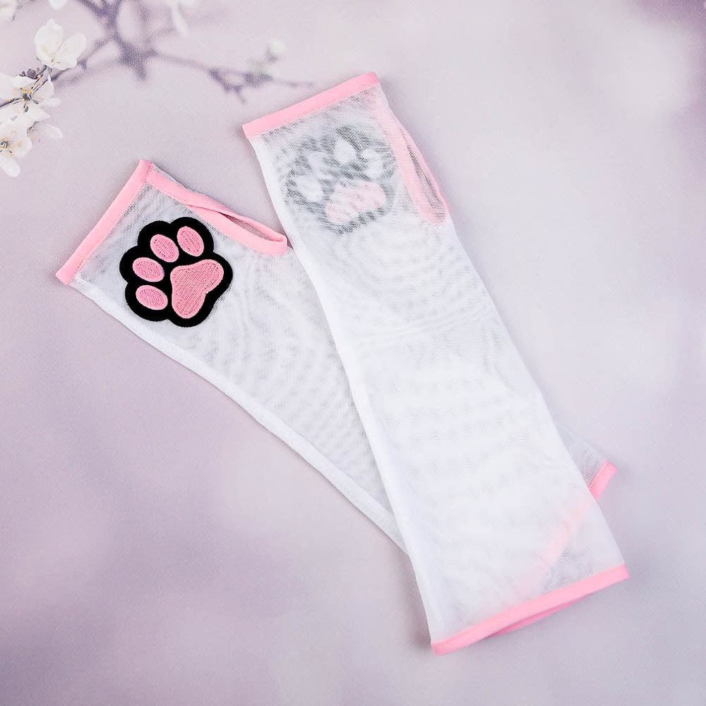 Made of elastic fabric that fits perfectly and is very comfortable to wear. Decorated with cute embroidered kitten pads.