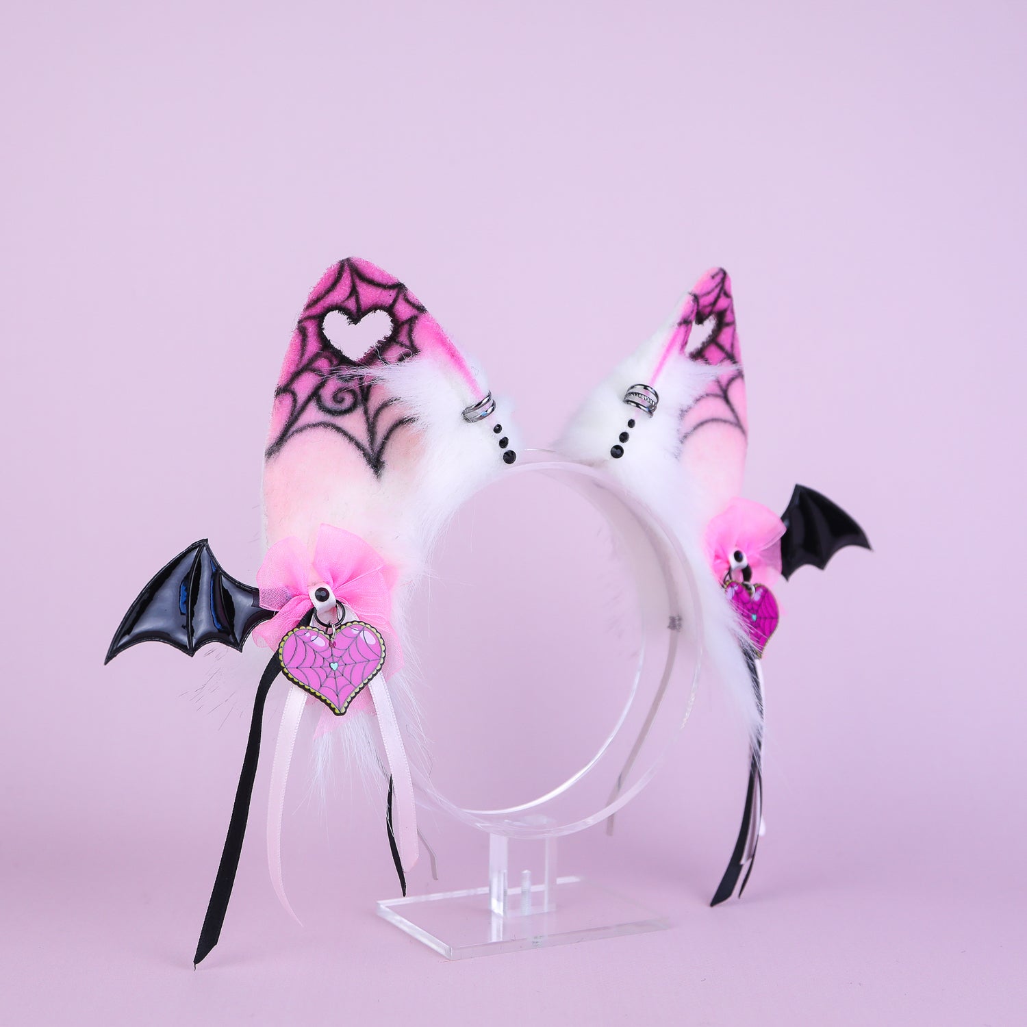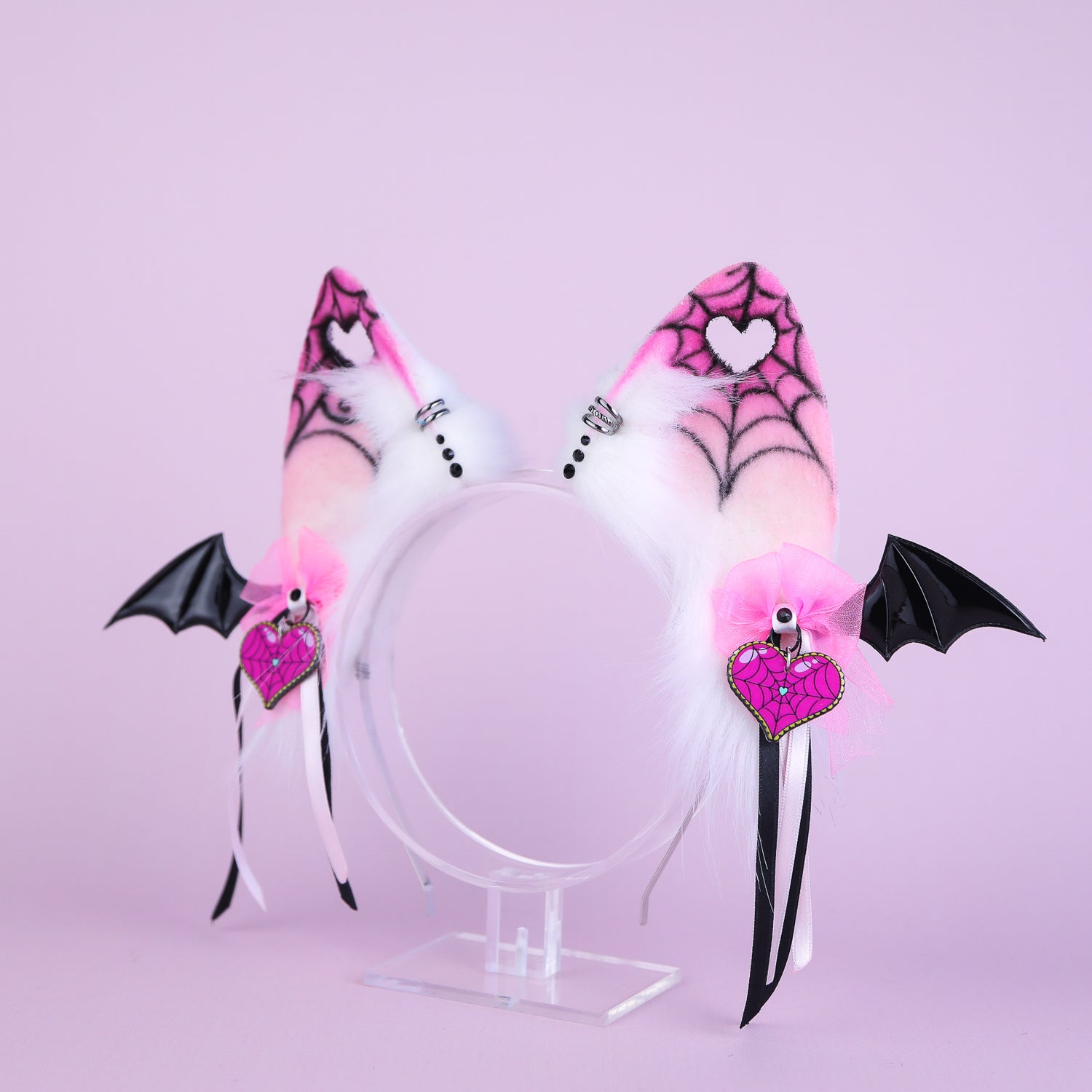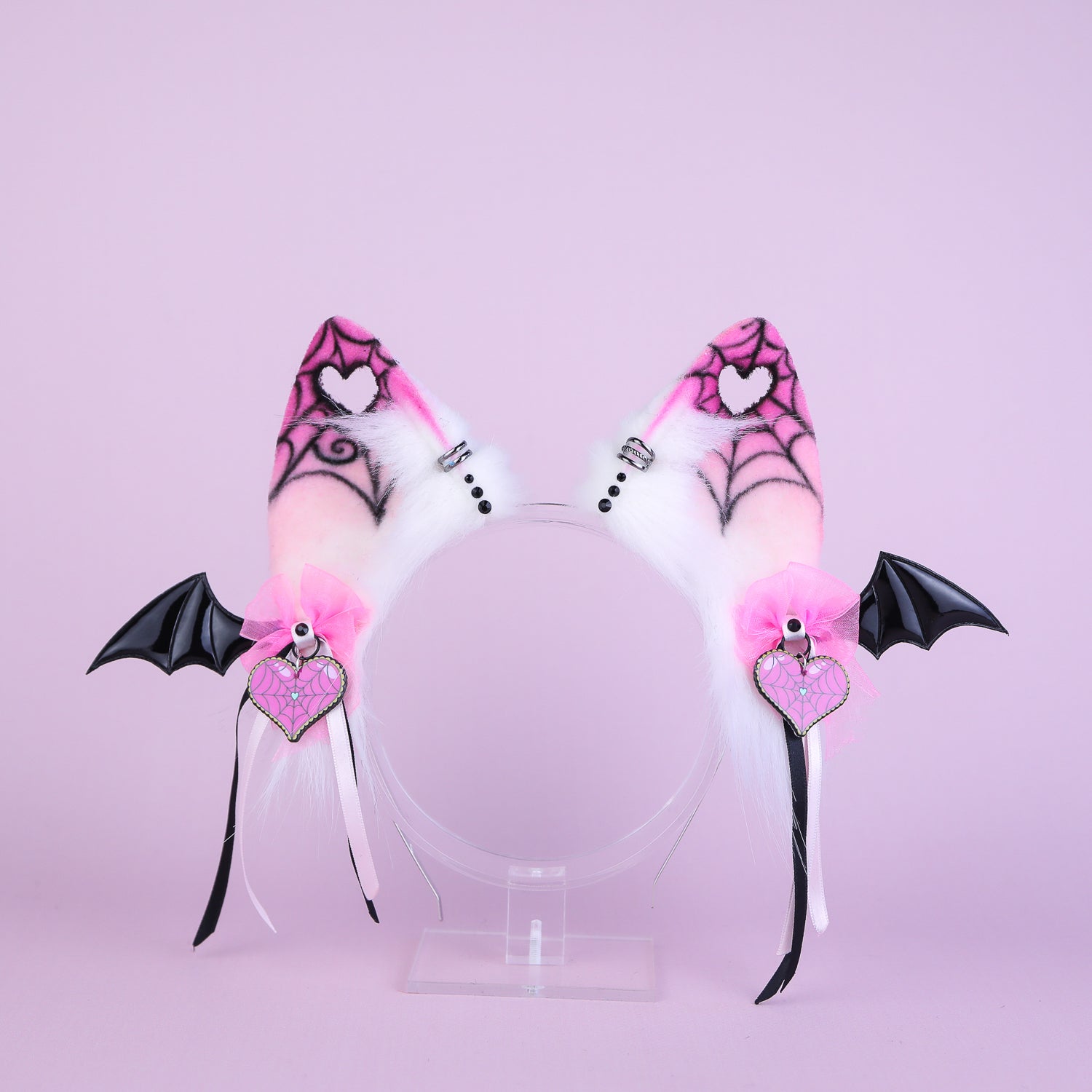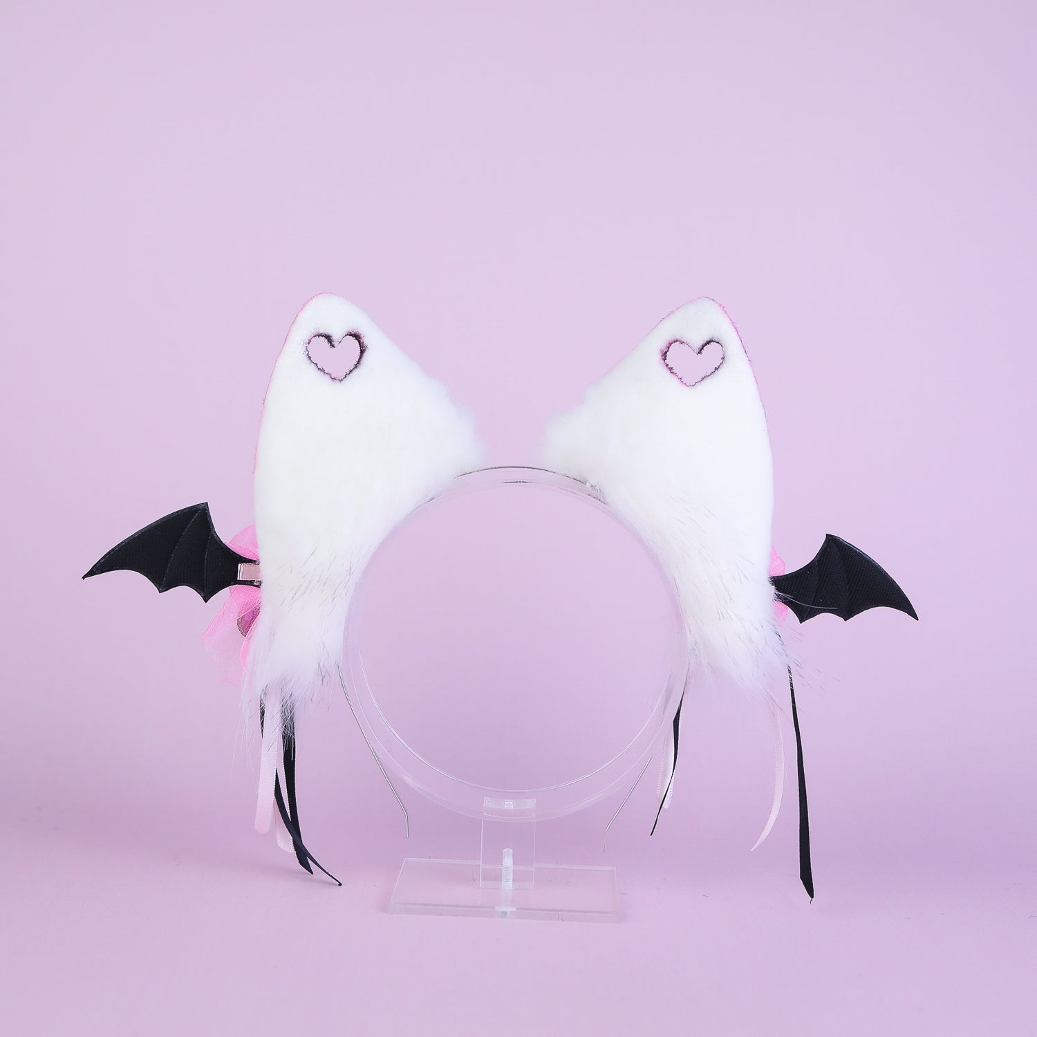 Ears are fully wired and posable on a metal headband. Approximately 3,5 inches tall. We use luxury quality faux fur and crystals. Ears are decorated with piercing hoops and removable bows on little alligator clips with pendants.