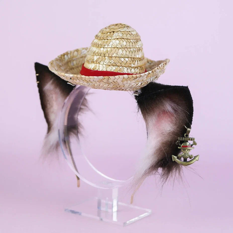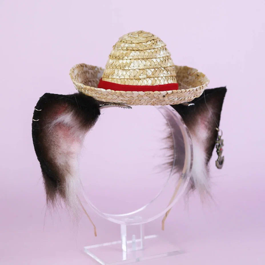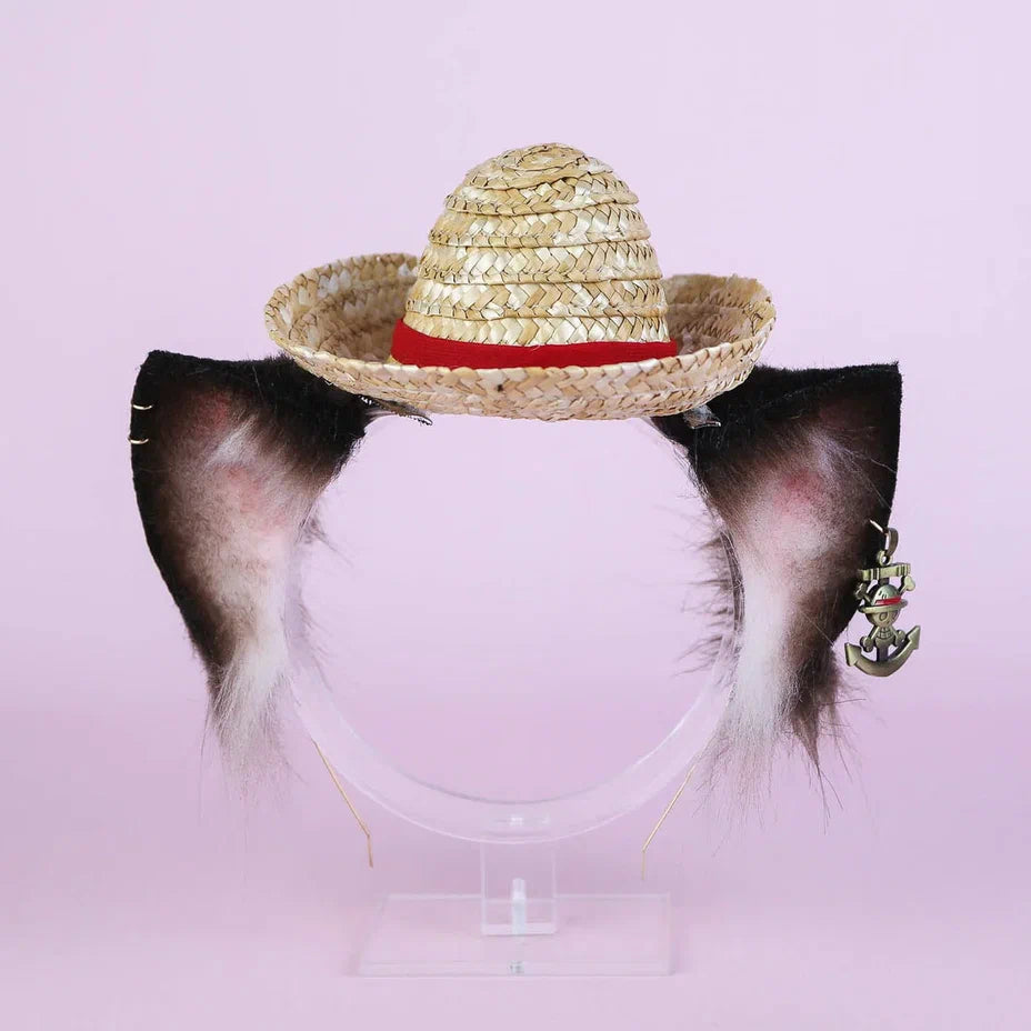 Ears are fully wired and posable on a metal headband. Approximately 2,5 inches tall. We use luxury quality faux fur and crystals. Ears are decorated with piercing hoops, chain with a charm and removable hat.