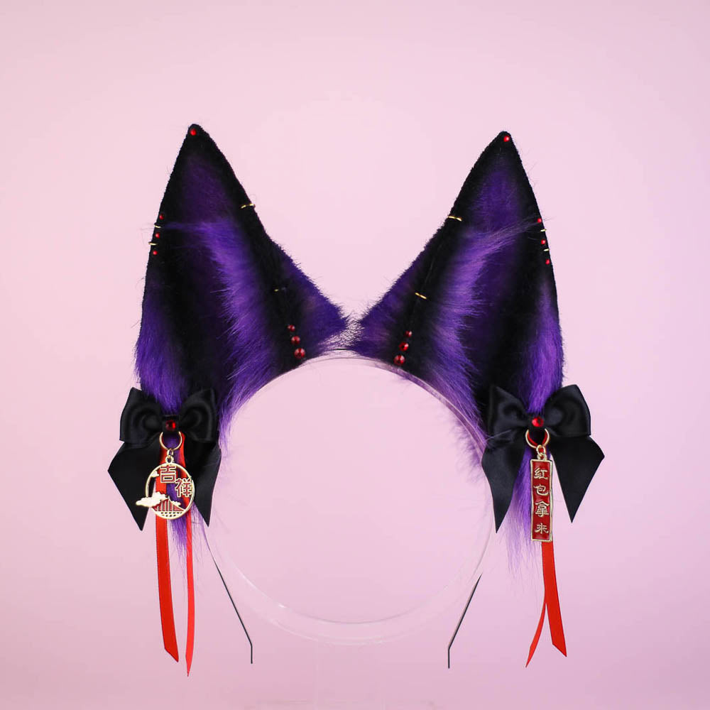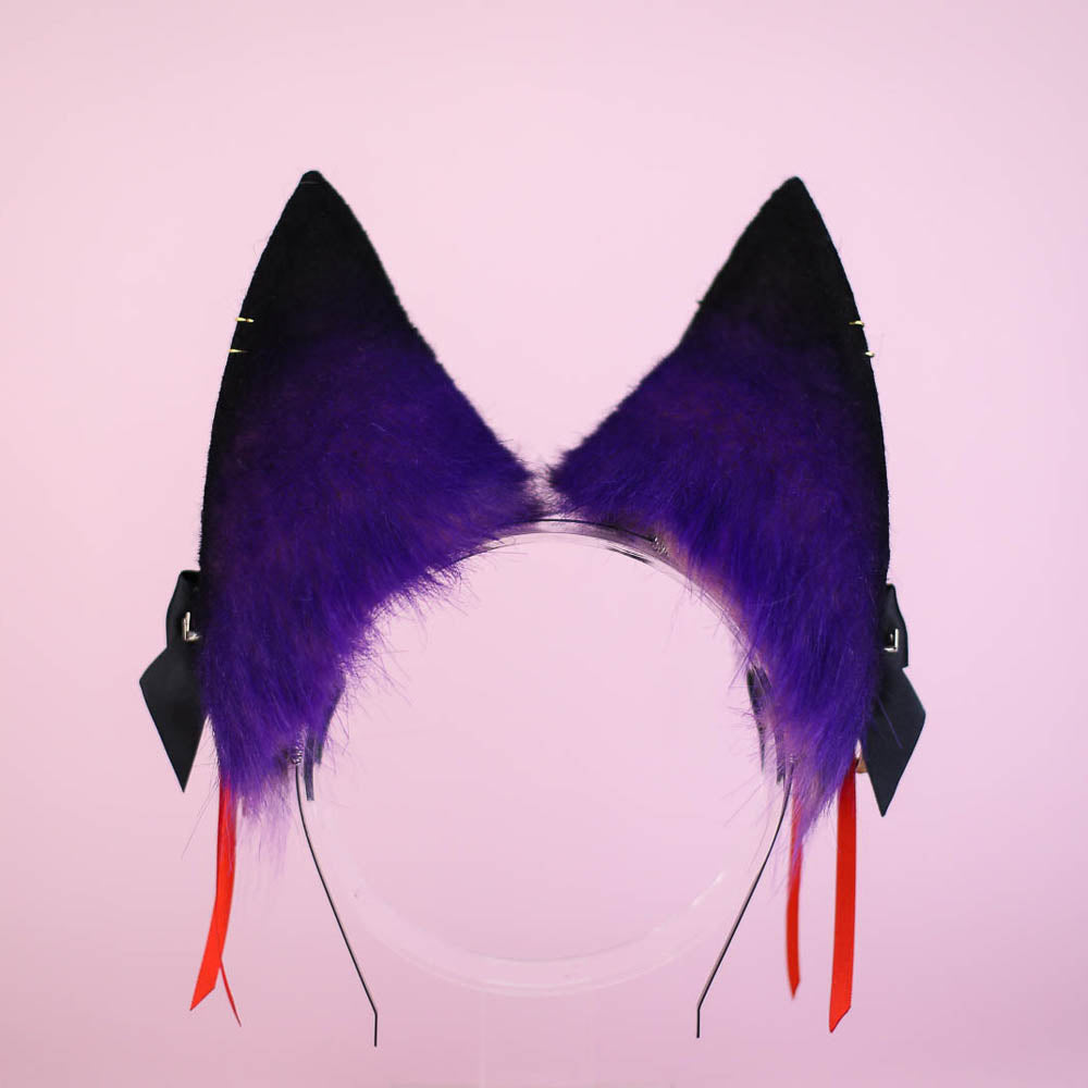 Ears are fully wired and posable on a metal headband. Approximately 3,5 inches tall. We use luxury quality faux fur and crystals. Ears are decorated with piercing hoops and removable winged bows on little alligator clips with pendants.