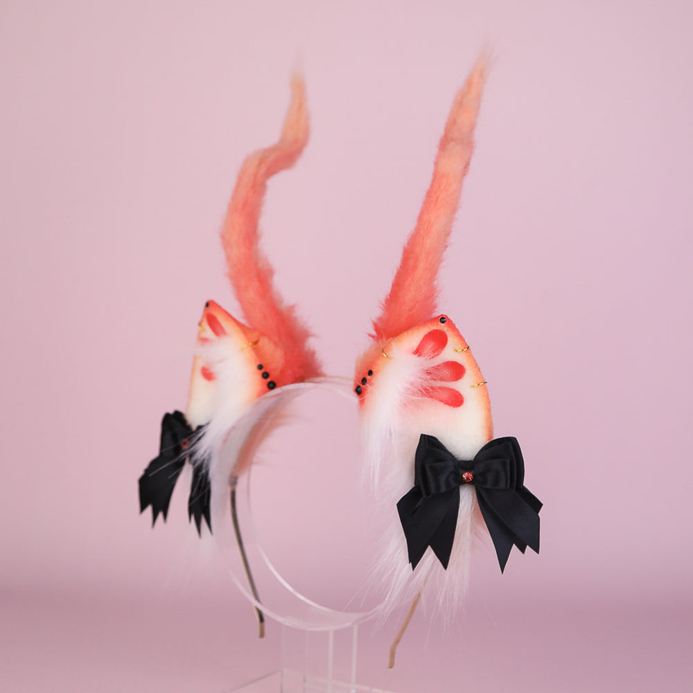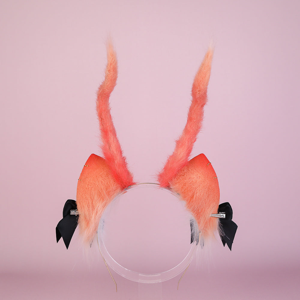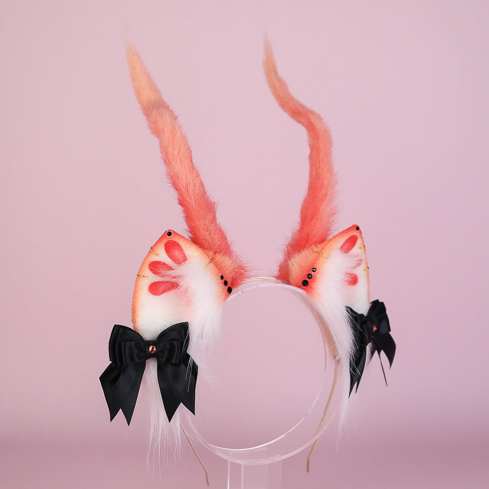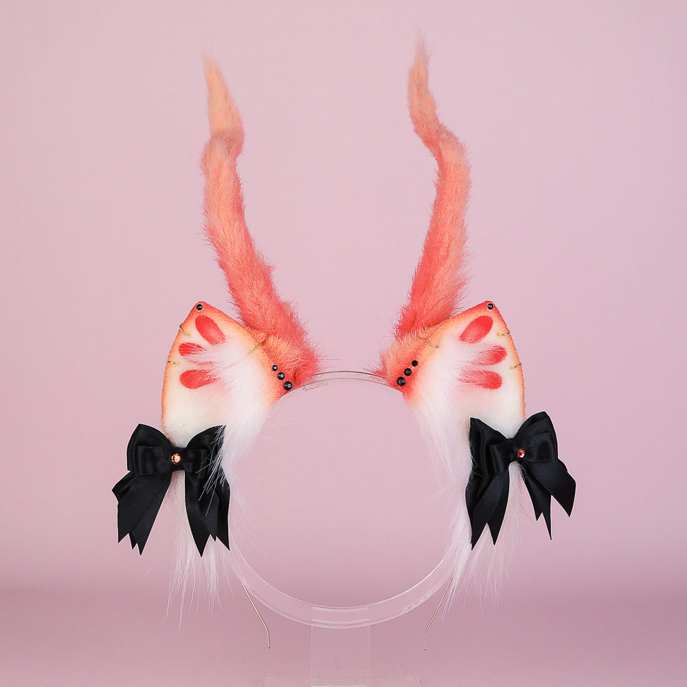 Ears are fully wired and posable on a metal headband. We use luxury quality faux fur and crystals. Approximately 3 inches tall.