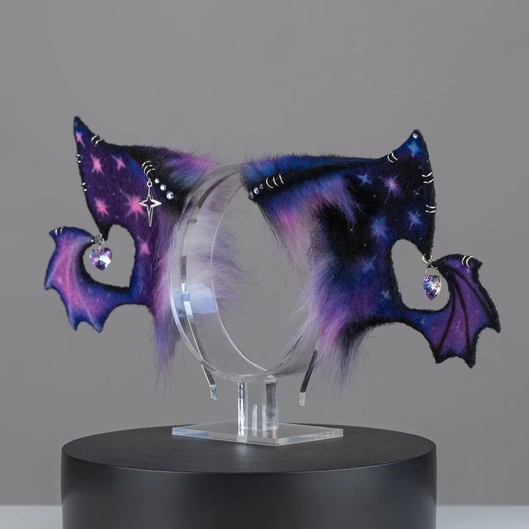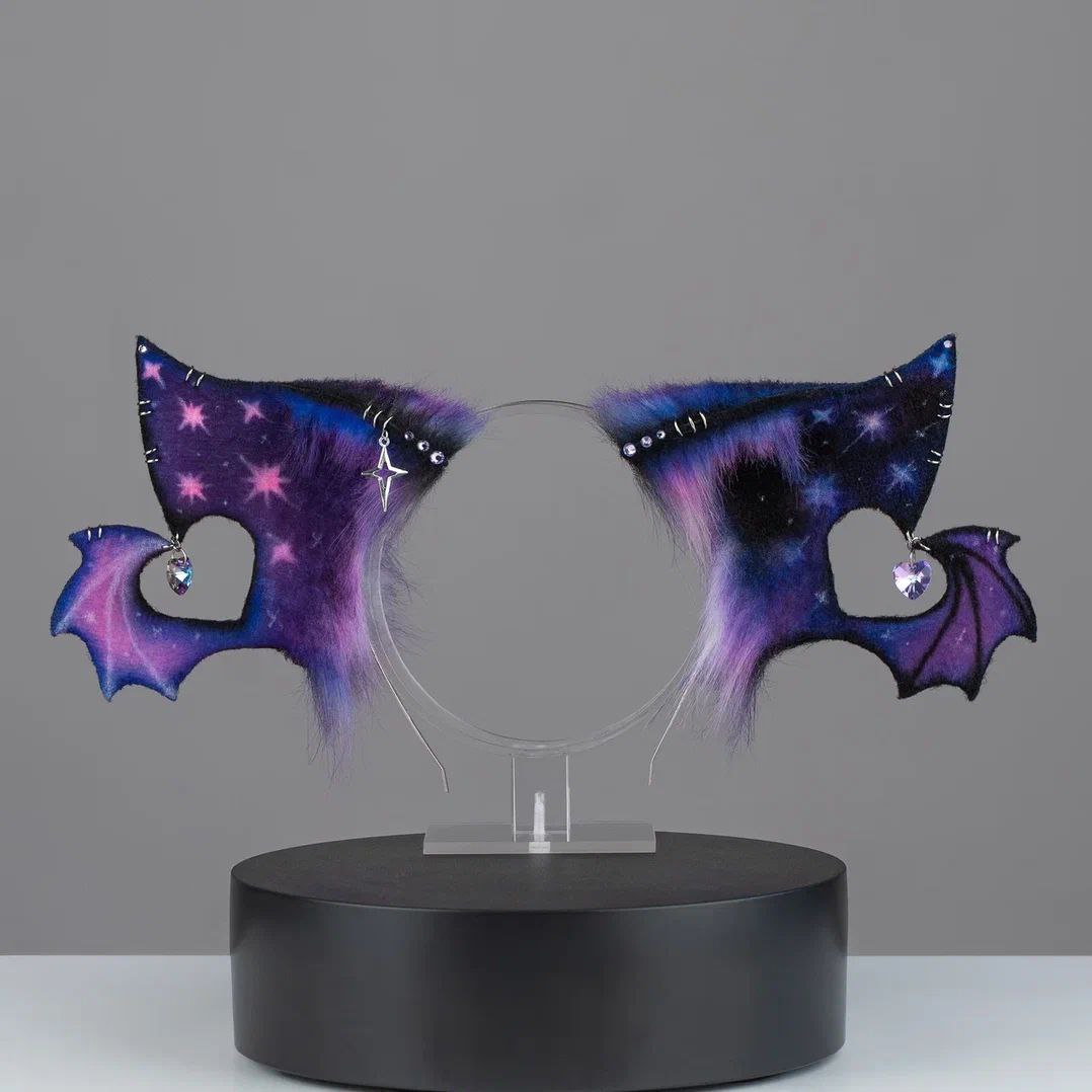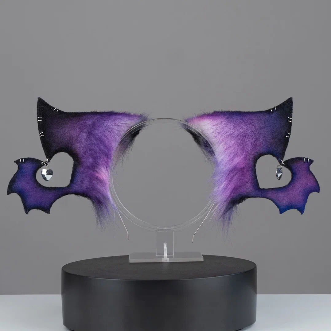 Ears are fully wired and posable on a metal headband. Approximately 3.5 inches tall. We use luxury quality faux fur and crystals. Ears are decorated with charms.
