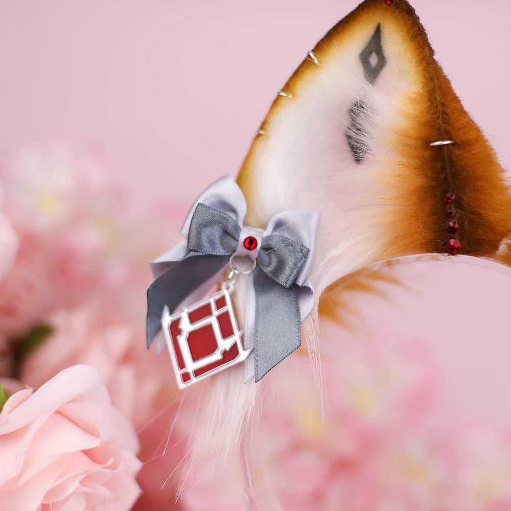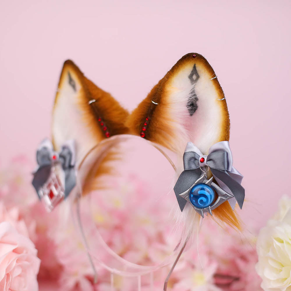 Ears are fully wired and posable on a metal headband. Approximately 3,5 inches tall. We use luxury quality faux fur and crystals. Ears are decorated with piercing hoops and removable bows on little alligator clips with pendants.