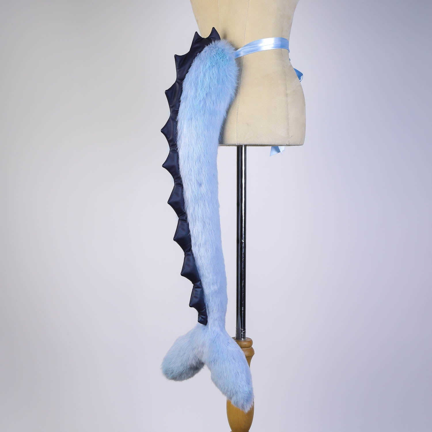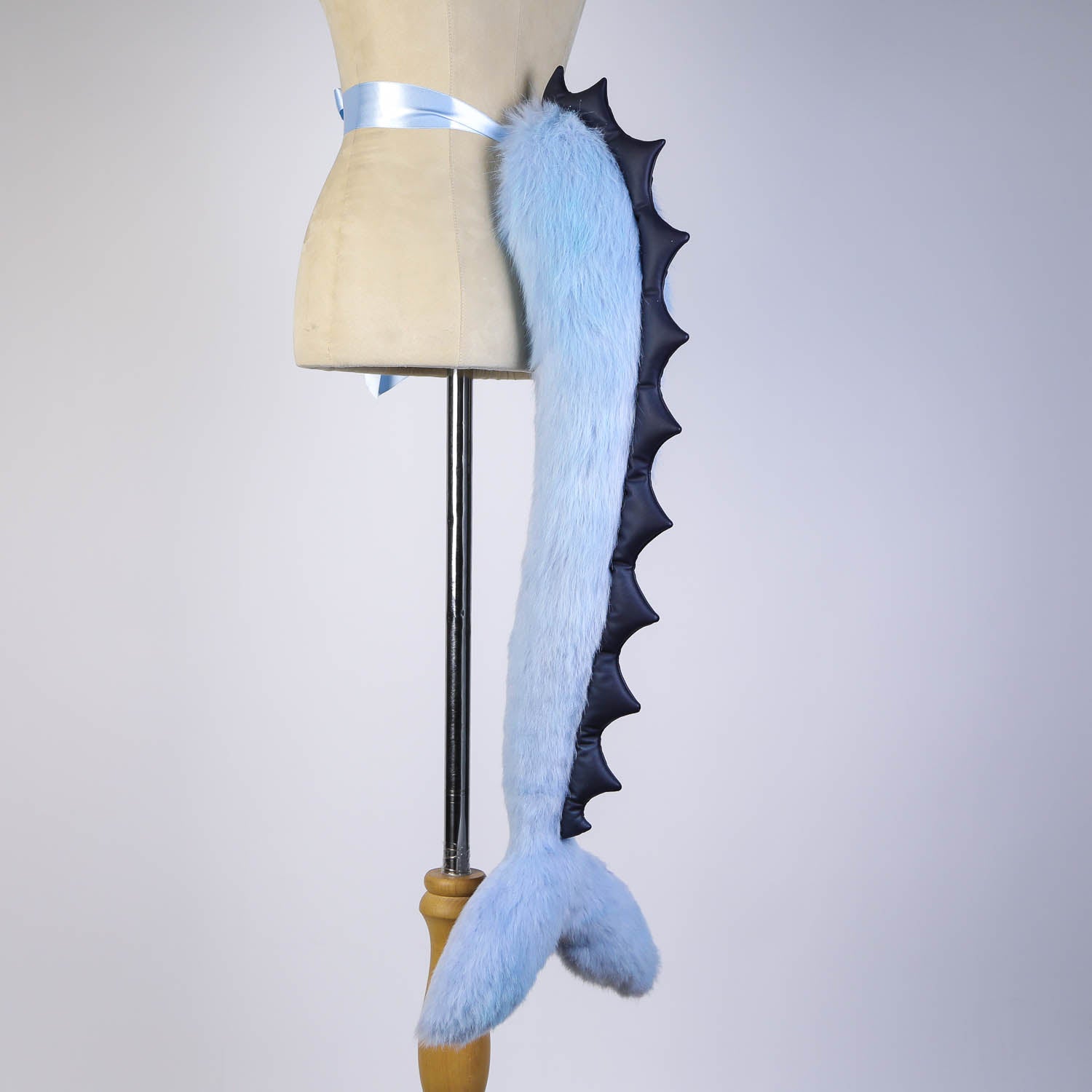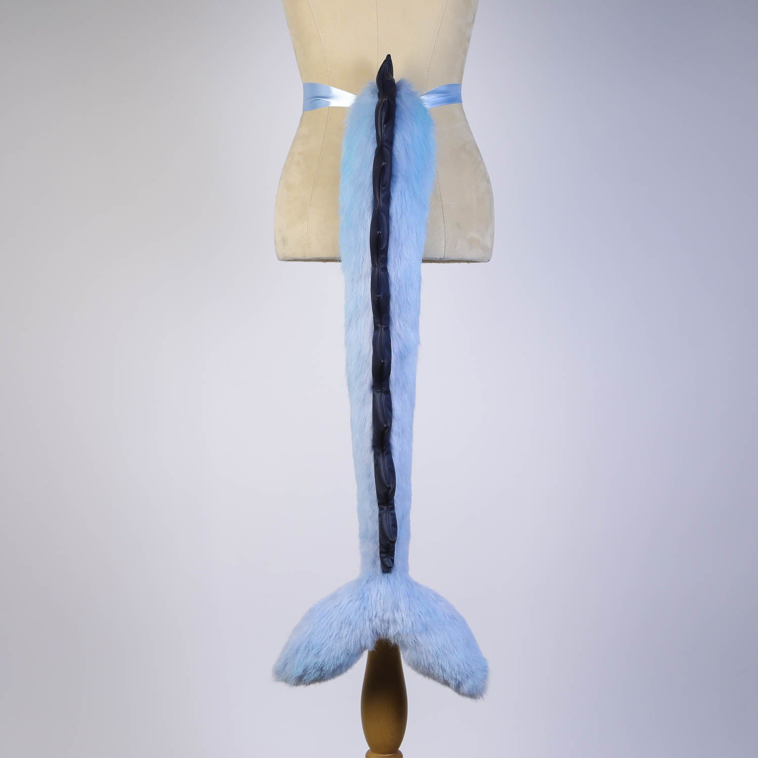 Fluffy tail approximately 33 inches long, made of luxury quality faux fur. Tail is attaching by an elastic belt loop and a doublesided ribbon.
