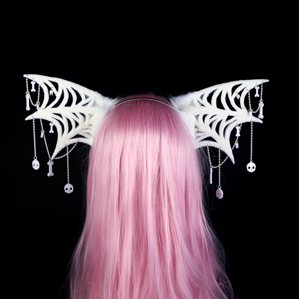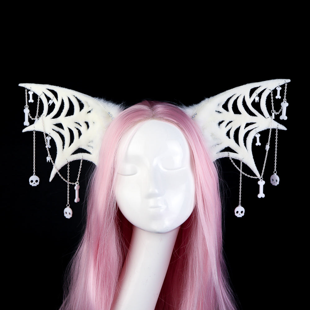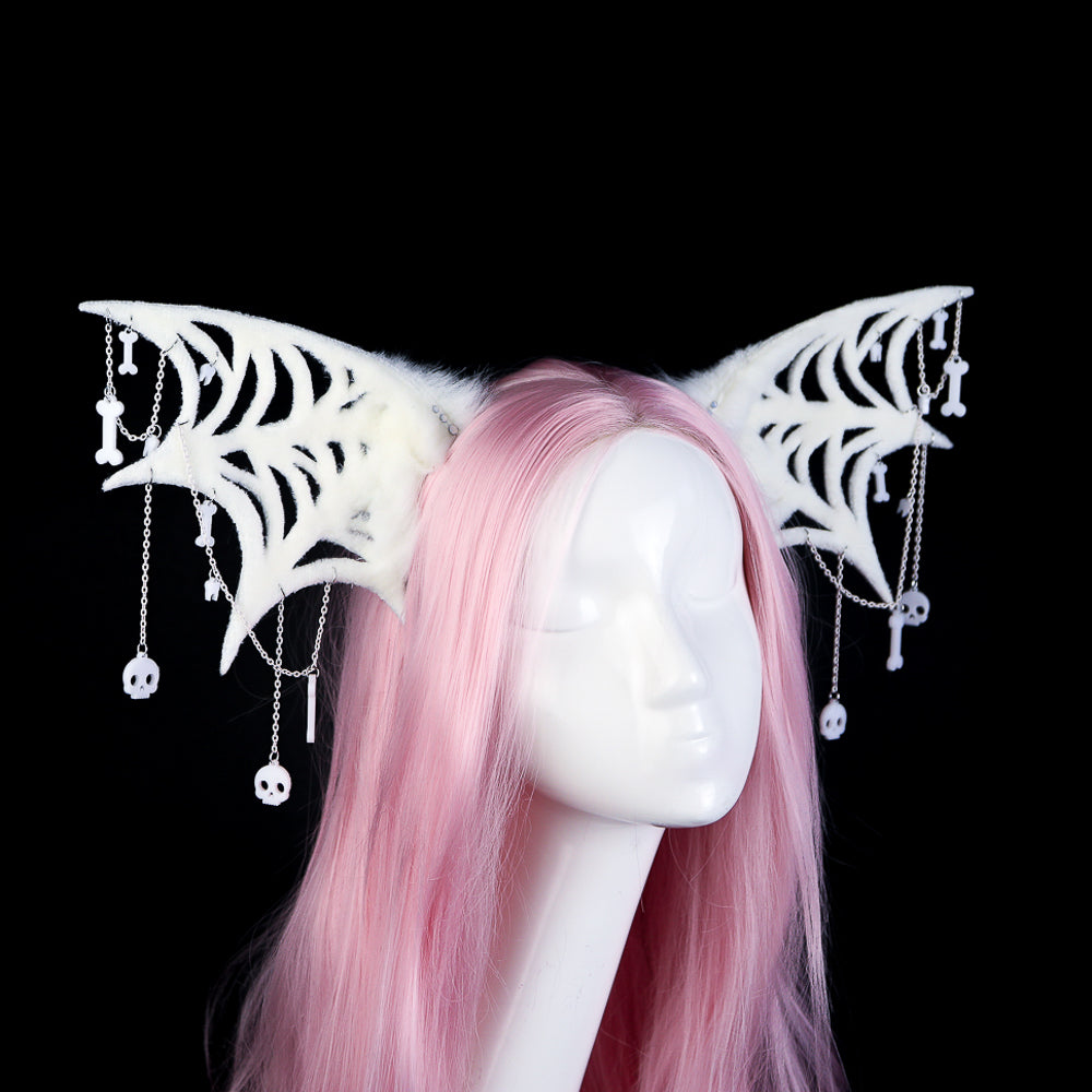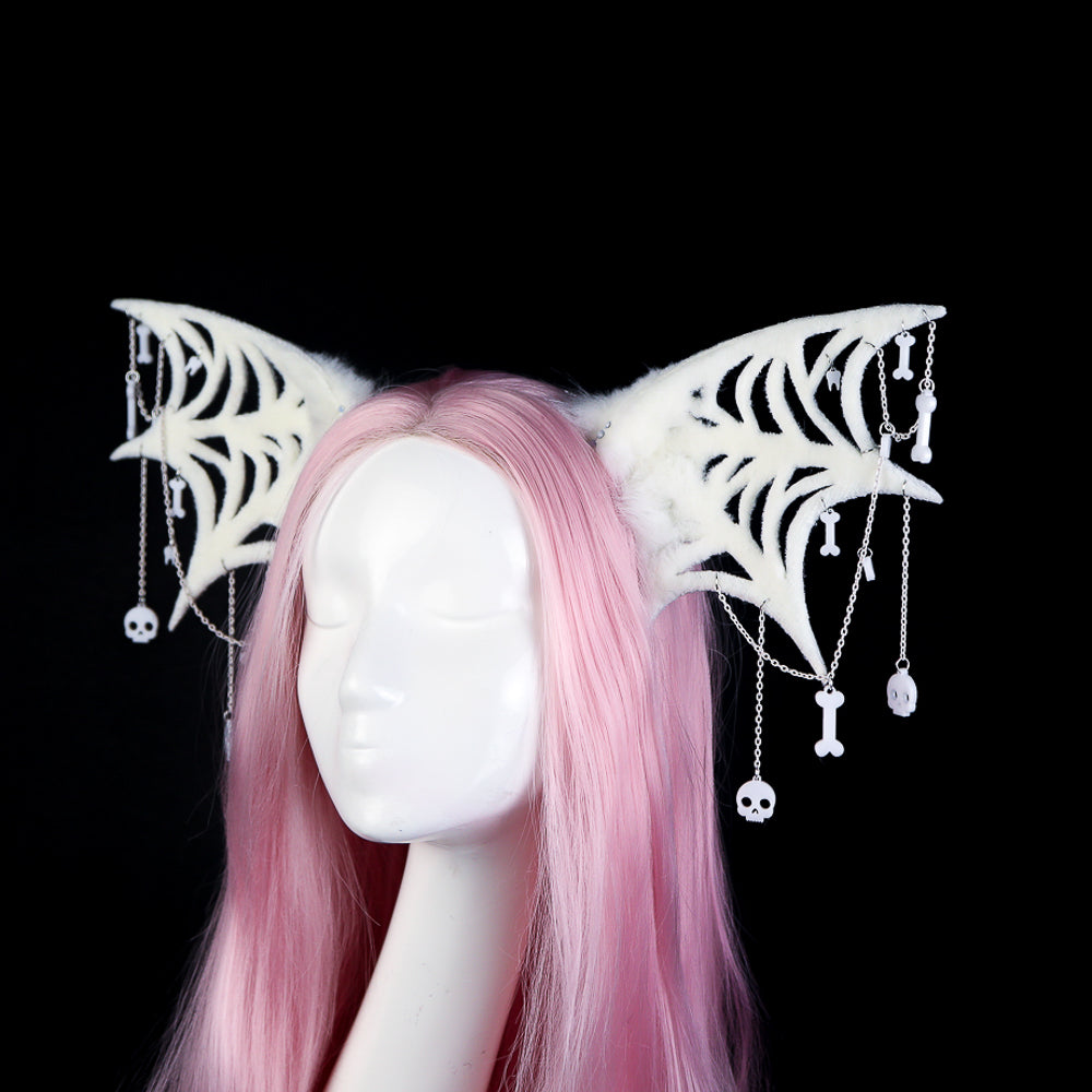 Ears are fully wired and posable on a metal headband. Approximately 3,5 inches tall. We use luxury quality faux fur and crystals. Ears are decorated with chains and charms.