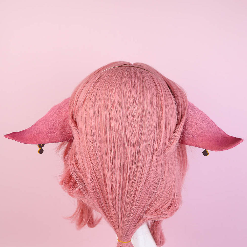 Ears are fully wired and posable on a metal headband. Approximately 5 inches tall. We use luxury quality faux fur and crystals. Ears are decorated with piercing hoops and removable bows on little alligator clips with pendants.
