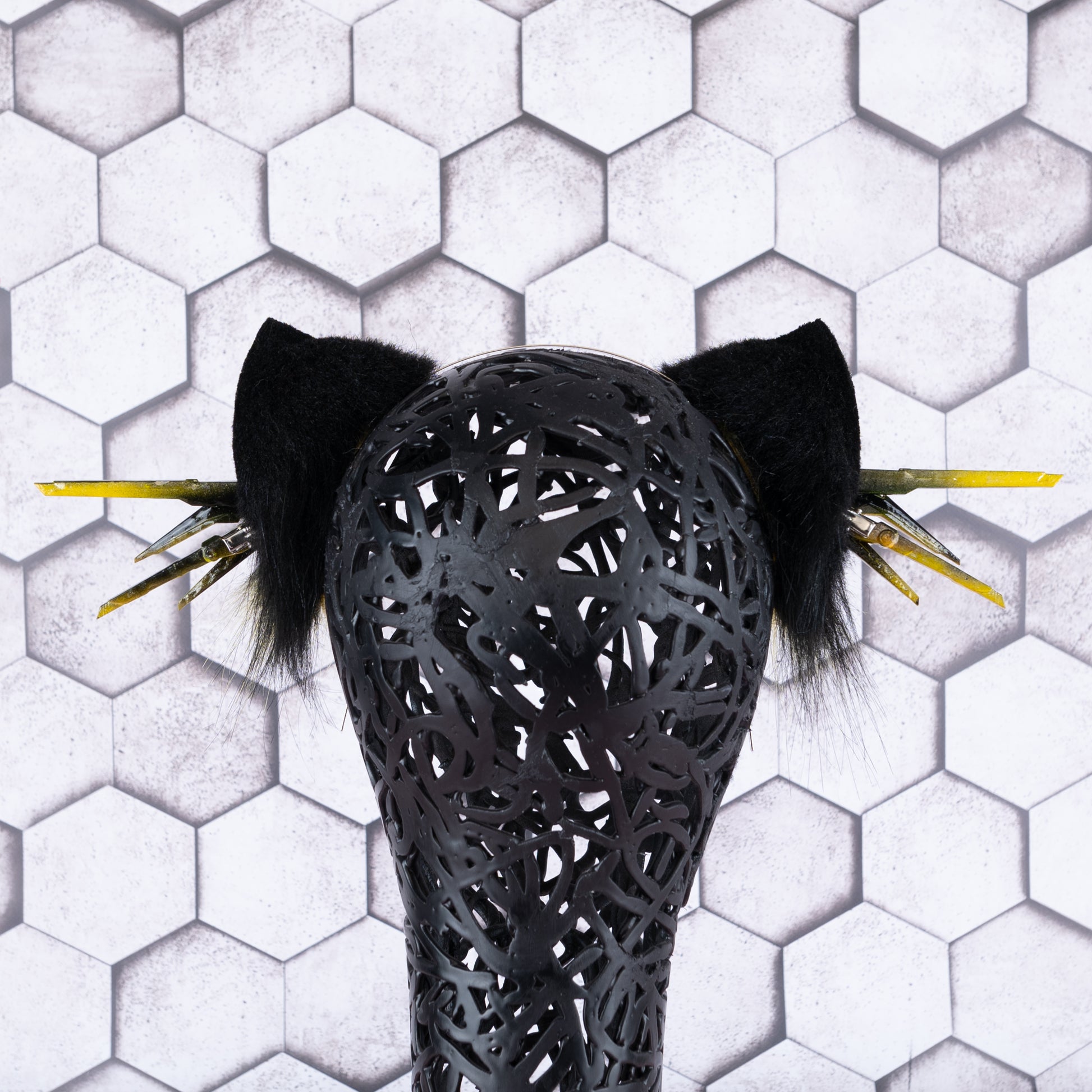 Ears are fully wired and posable on a metal headband. Approximately 2.5 inches tall. We use luxury quality faux fur and crystals.